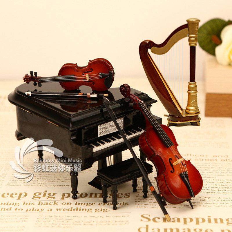 咖啡色迷你钢琴模型三角竖式摆件音乐盒八音盒送老师男女朋友礼物