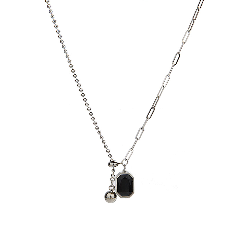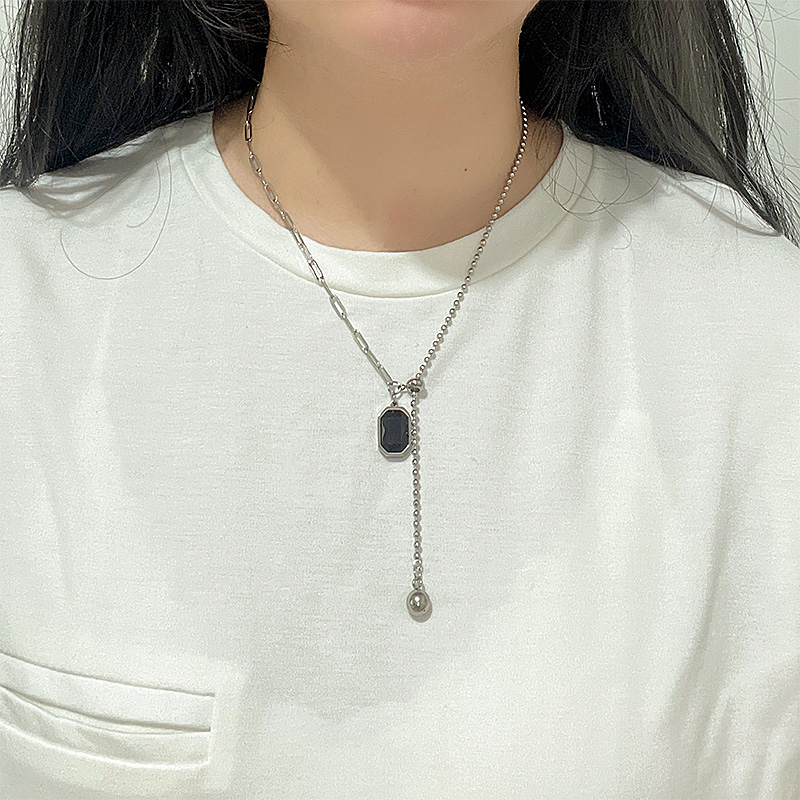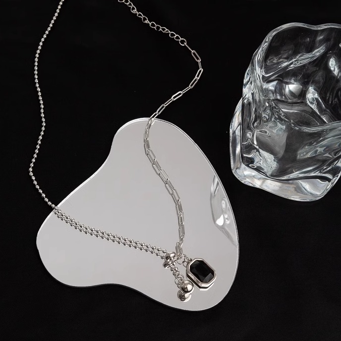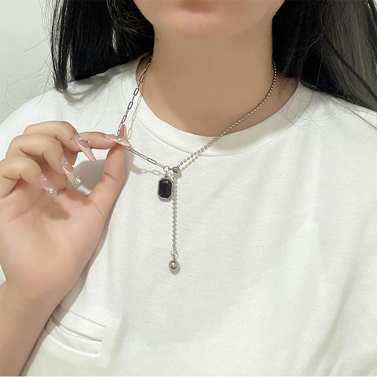 UNBEATEN黑色方块项链女小众设计感可调节抽拉锁骨链毛衣链配饰