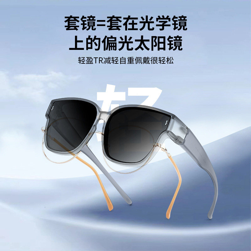 近视专用偏光太阳镜大框黑色墨镜防紫外线显脸小开车防晒眼镜套