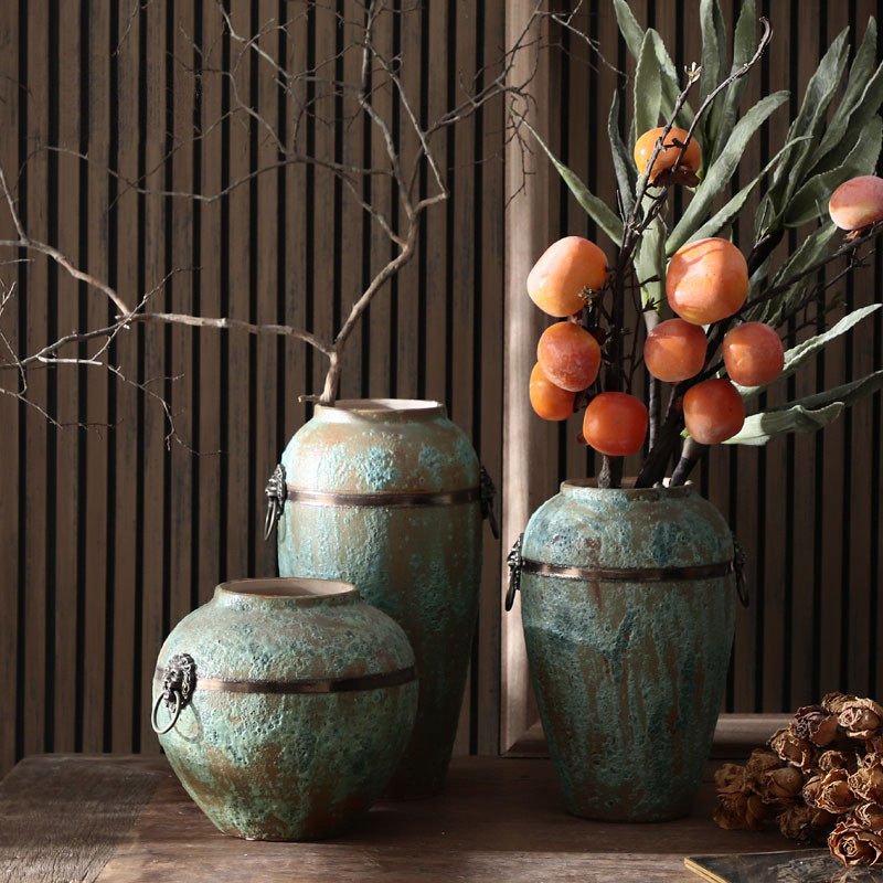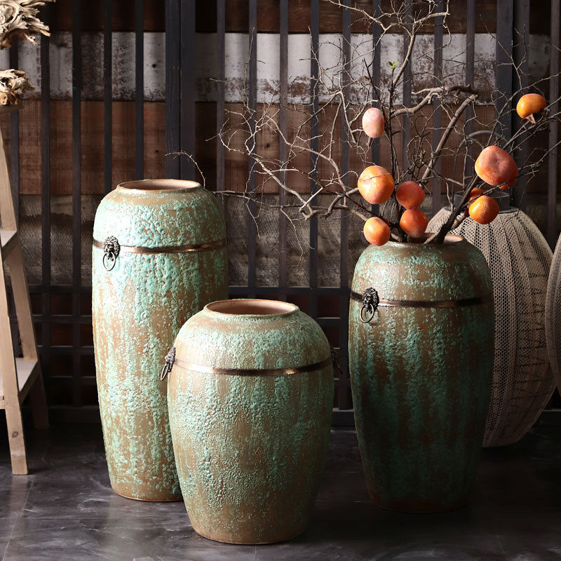 景德镇三件套落地花瓶陶瓷酒店会所软装装饰花瓶纯手工改粗陶陶罐