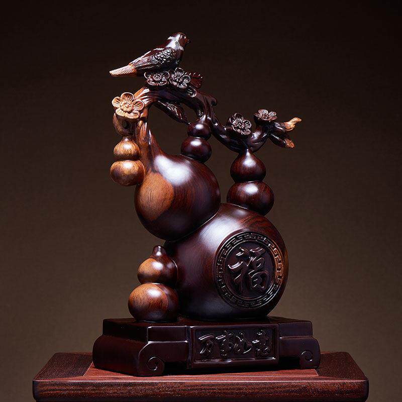 木雕五福临门葫芦摆件实木根雕家居客厅酒柜桌面装饰公司乔迁礼品