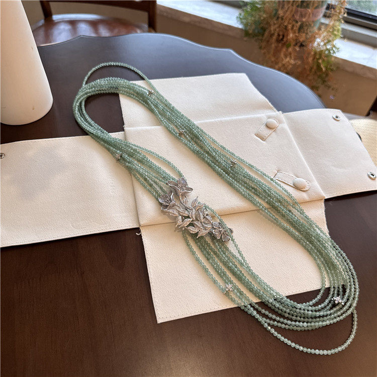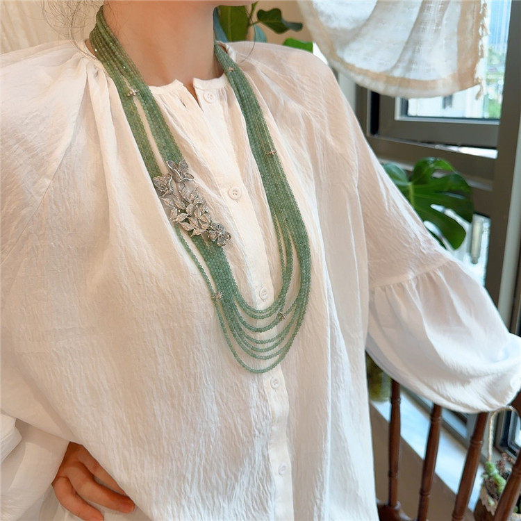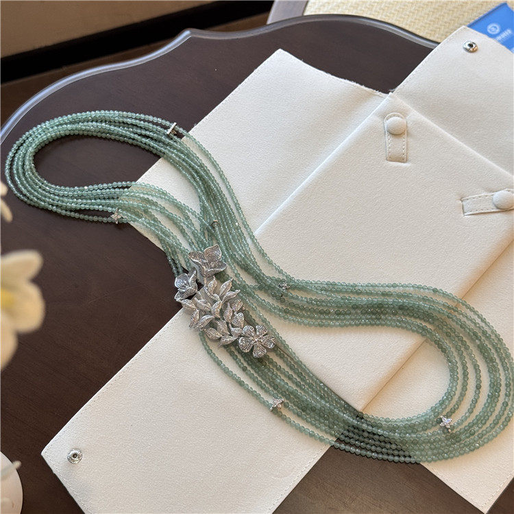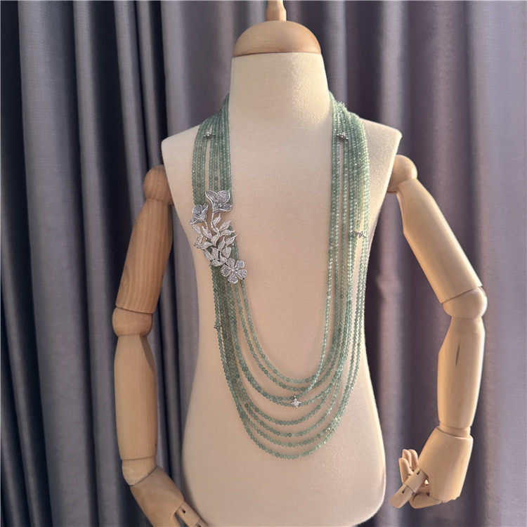 绿色东陵玉项链小众设计高级感多层串珠长款毛衣链豪华轻奢首饰女