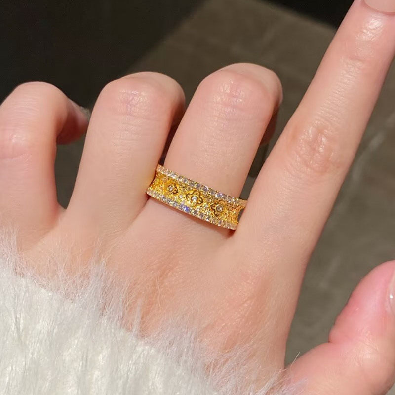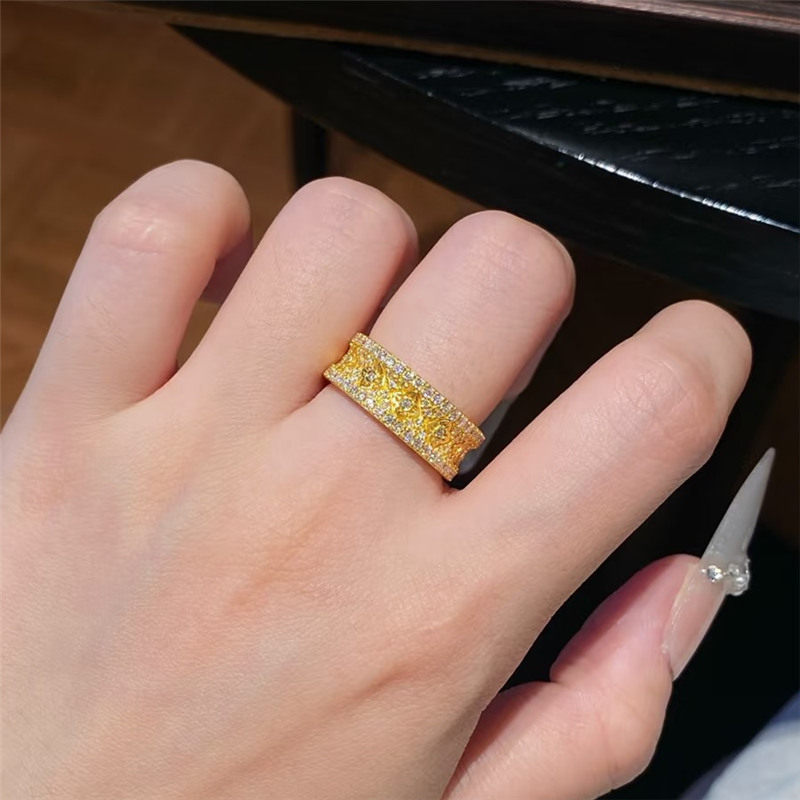 古法沙金爆闪亮钻十字金刚杵戒指女仿真黄金满天星开口指环食指戒