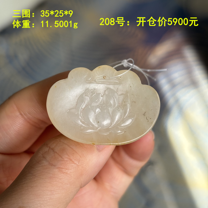 N白玉籽料莲花挂件 平安锁 有原皮朕®开仓新疆和田玉