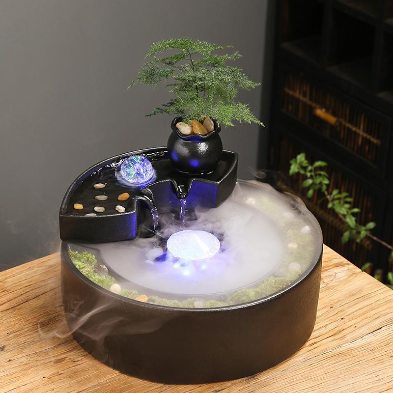 流水摆件循环水喷泉创意陶瓷客厅生财招财办公室桌面微景观装饰品