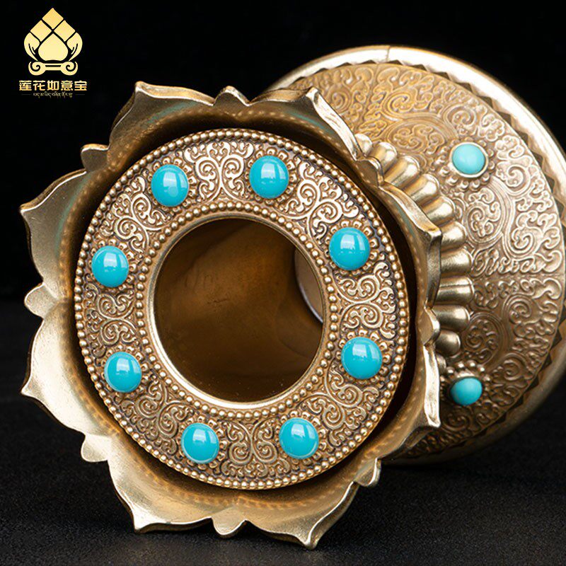 纯铜手摇转动轮底座莲花转筒插座密宗转经简底座西藏手摇转轮底托
