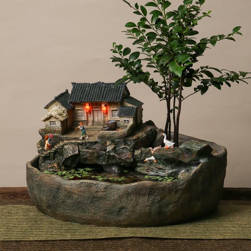 桌面微景观小鱼缸流水摆件循环水客厅办公室装饰开业乔迁新居礼品
