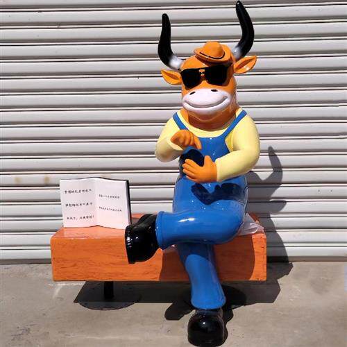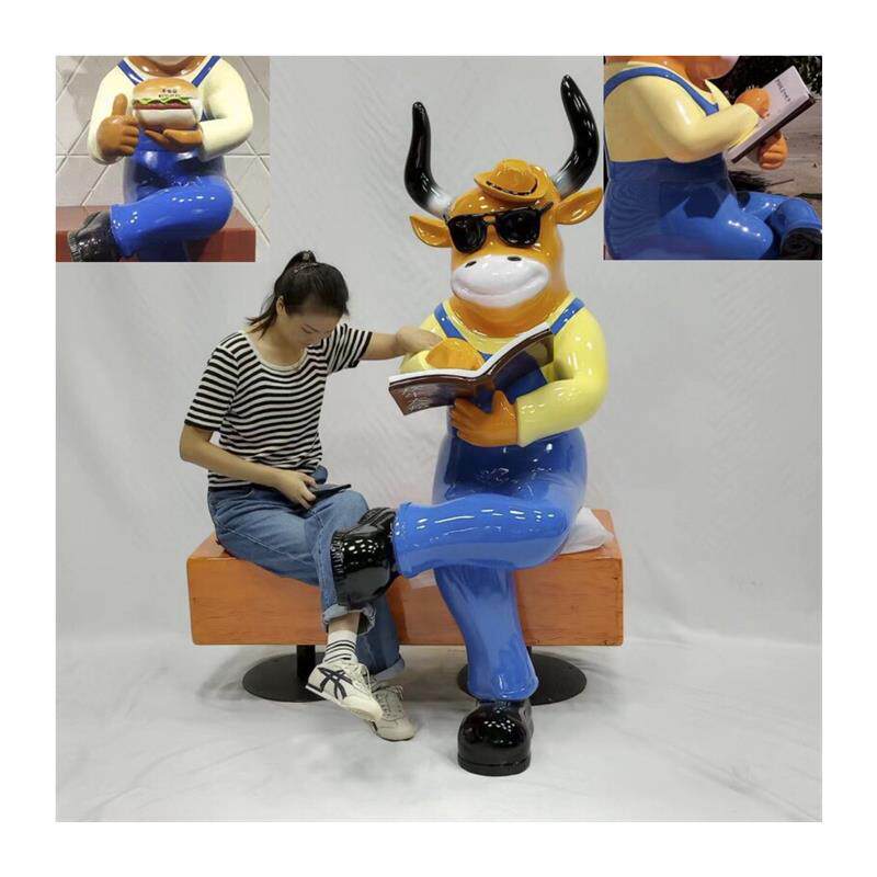 卡通雕塑看书牛汉堡牛玻璃钢大型摆件商场牛肉火锅店门口引流装饰