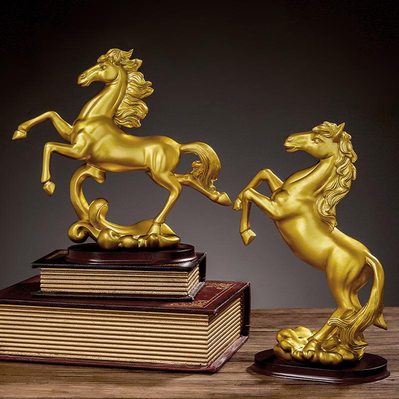 新中式金色马到成功摆件客厅玄关酒柜办公室装饰摆设乔迁新居礼品