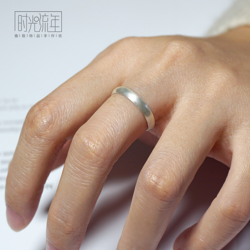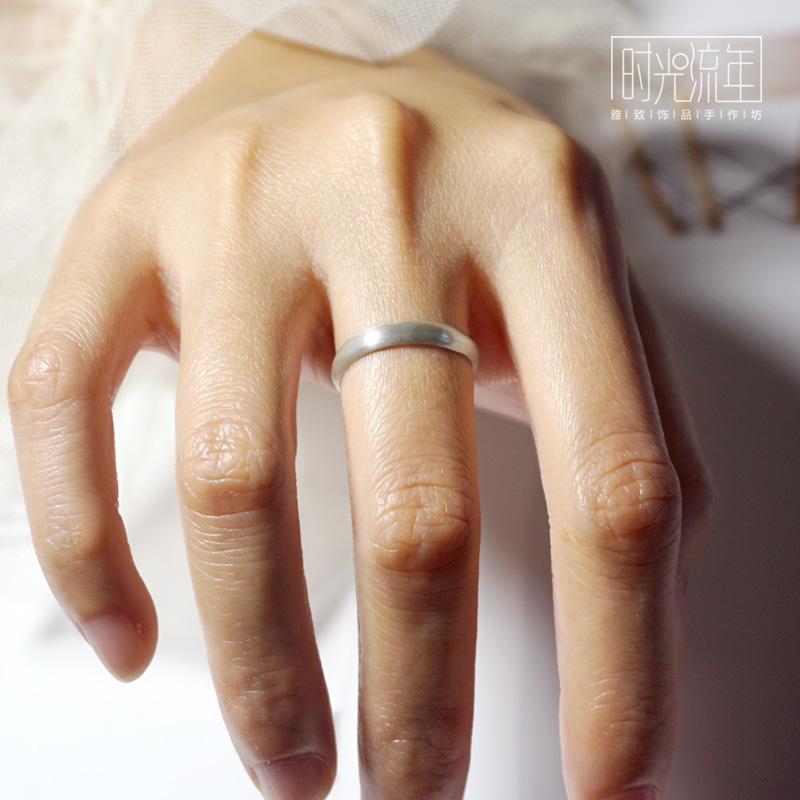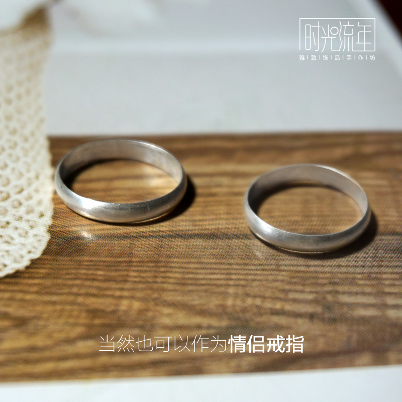 999纯银素圈情侣戒指女胖手大号闭口活口简约时尚小指素戒尾戒