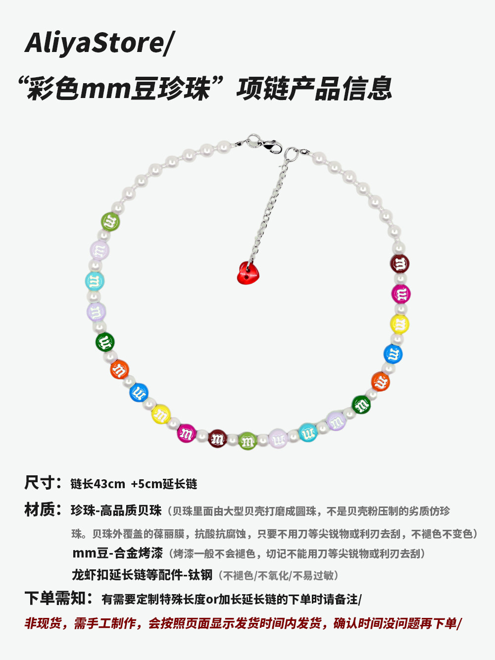 AliyaStore/原创手作彩色mm豆珍珠项链可爱甜美串珠毛衣链锁骨链