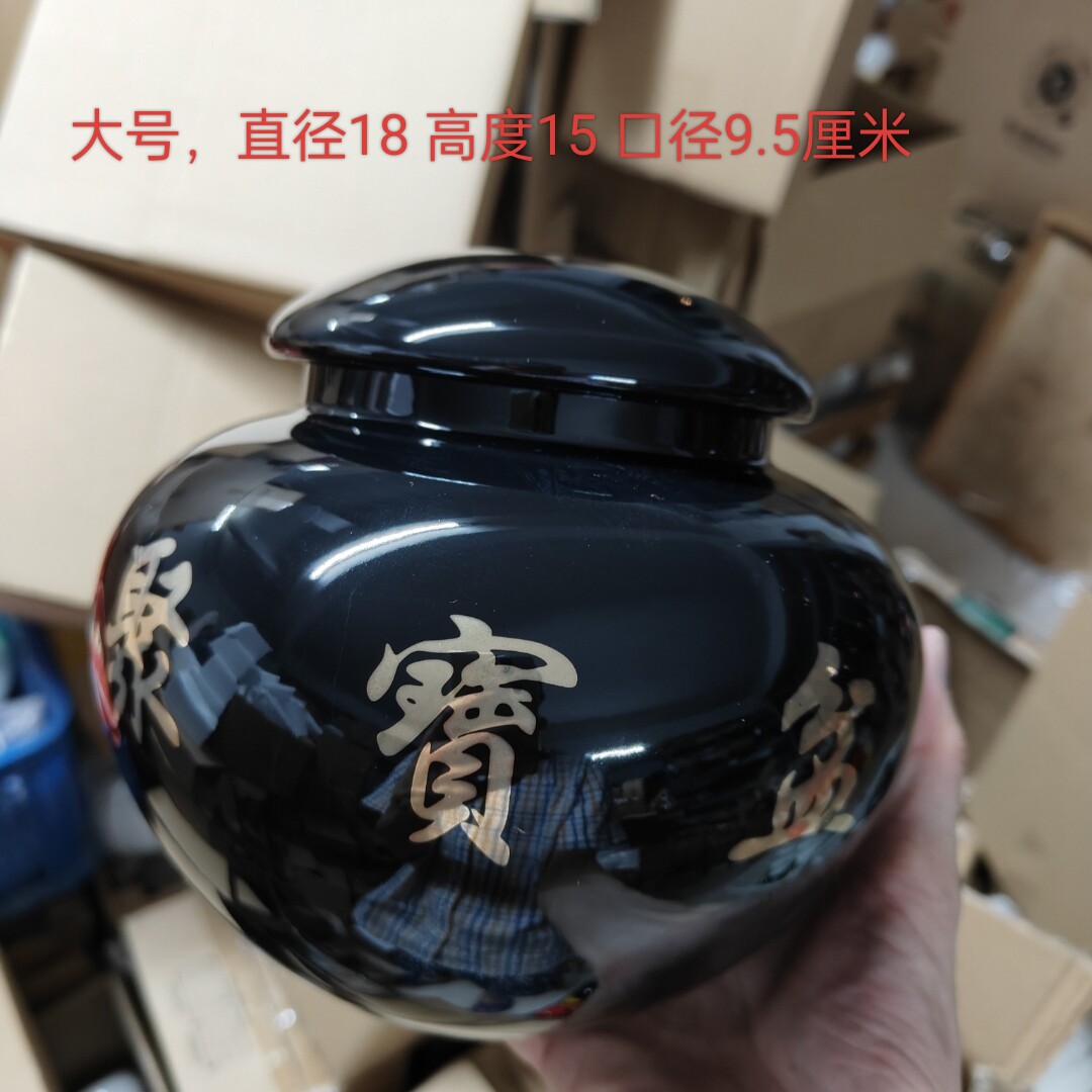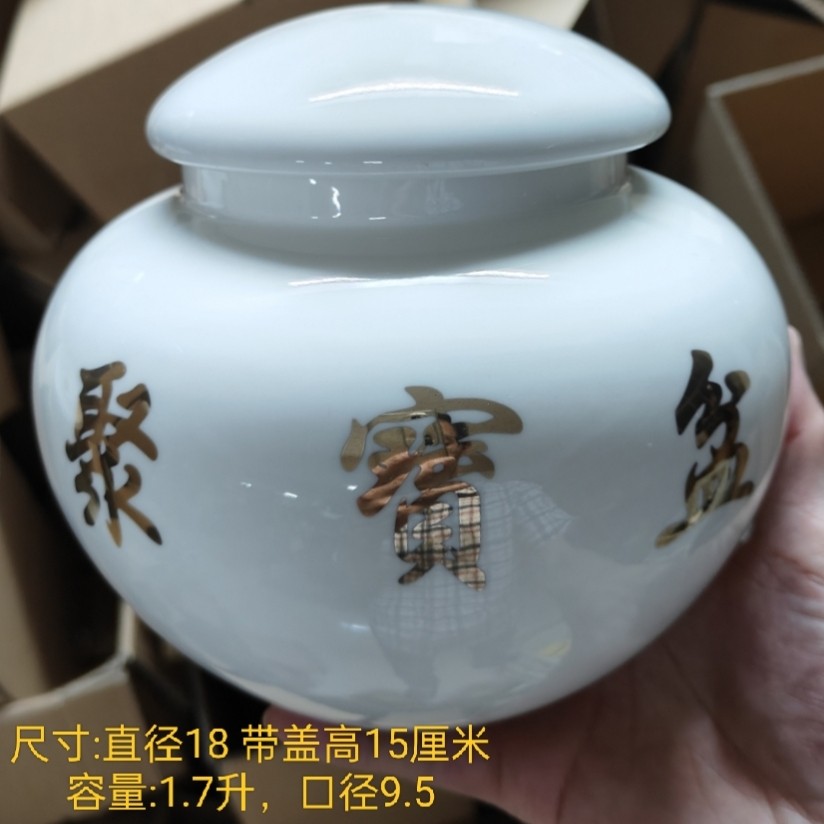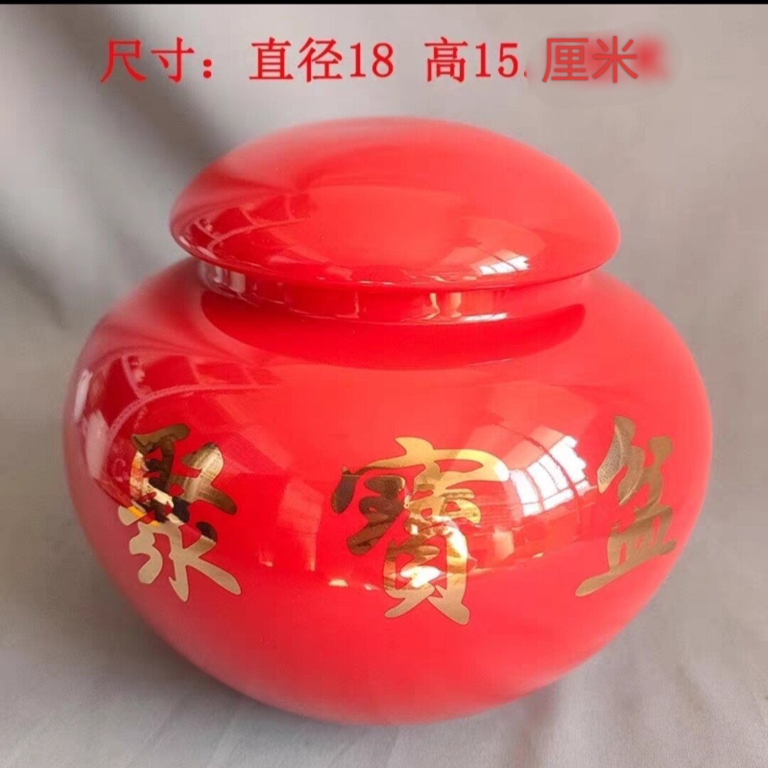 1个白色红色黄色大号聚宝盆容量1.7升直径18高度15厘米陶瓷罐摆件