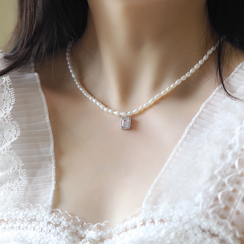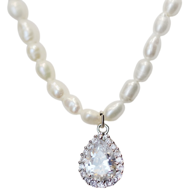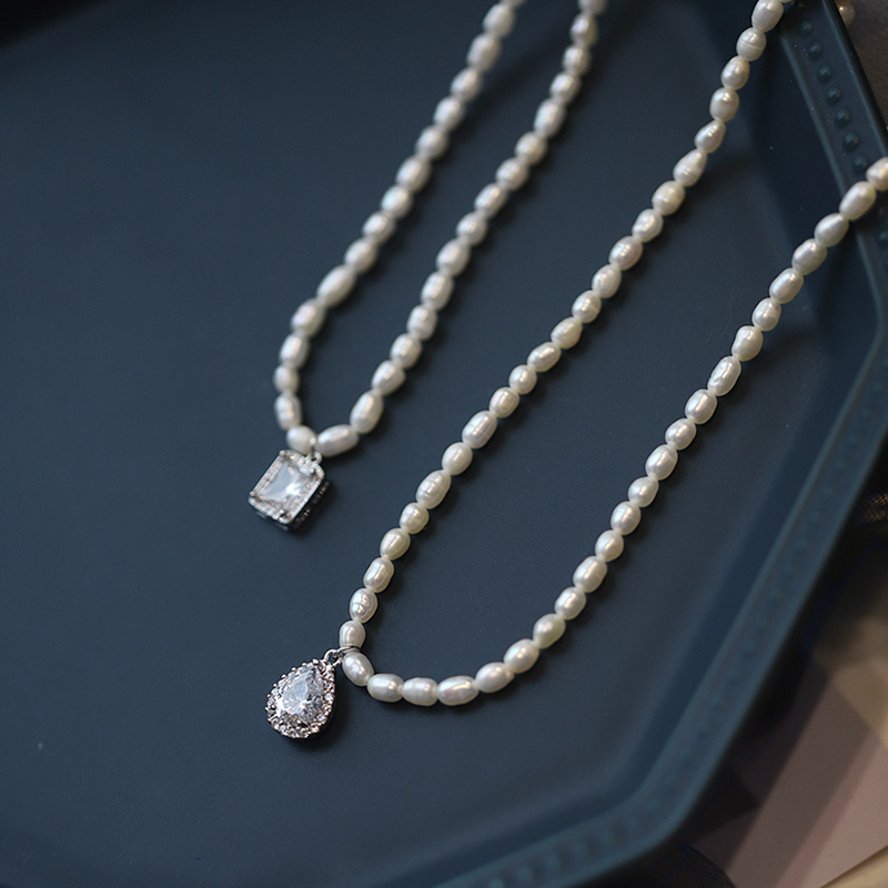 速发淡水珍珠项链轻奢小众2021年新款复古水滴爱心宝石吊坠锁骨链