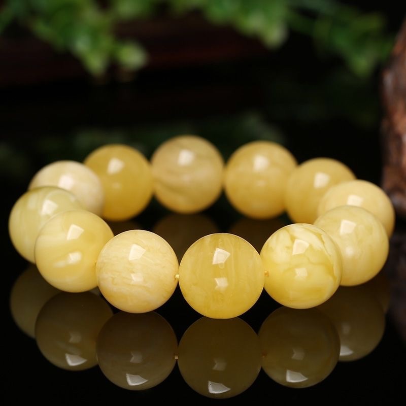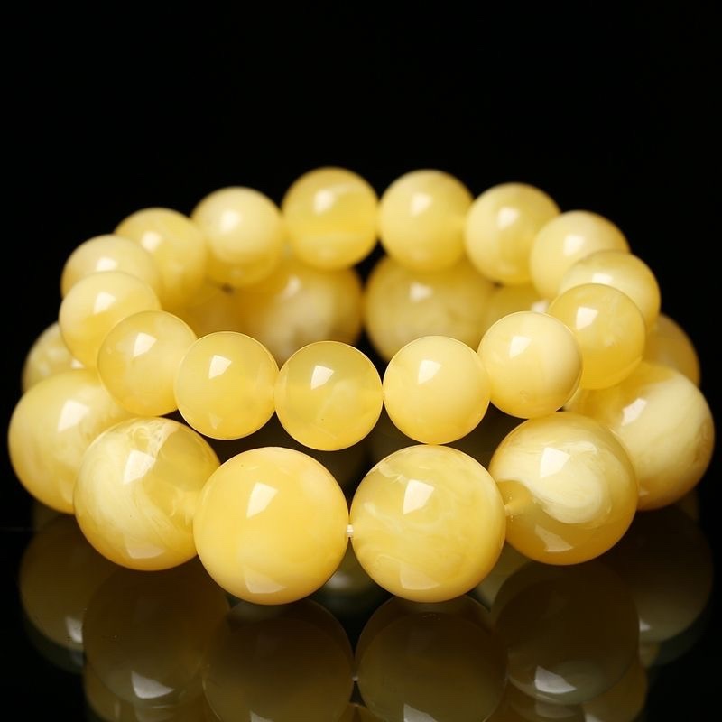 纯白花蜜蜡手串圆珠大气男女款单圈高档琥珀飘花鸡油黄手链