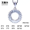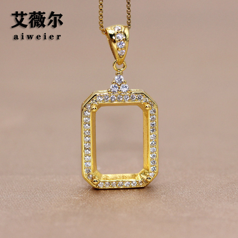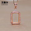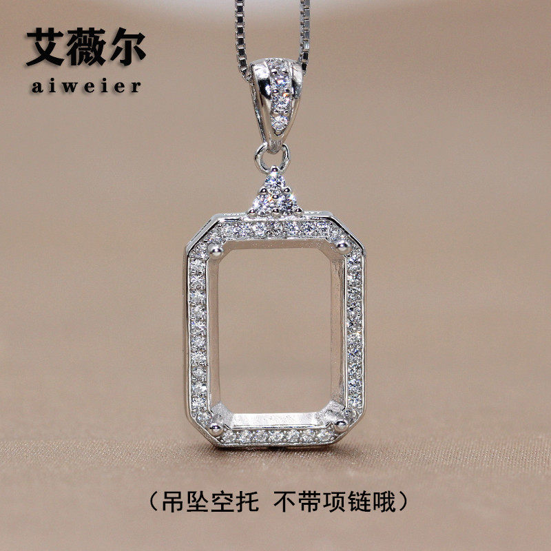 精工925银围钻长方形吊坠空托宝石镶嵌4*6-8*10-15*20mm尺寸全