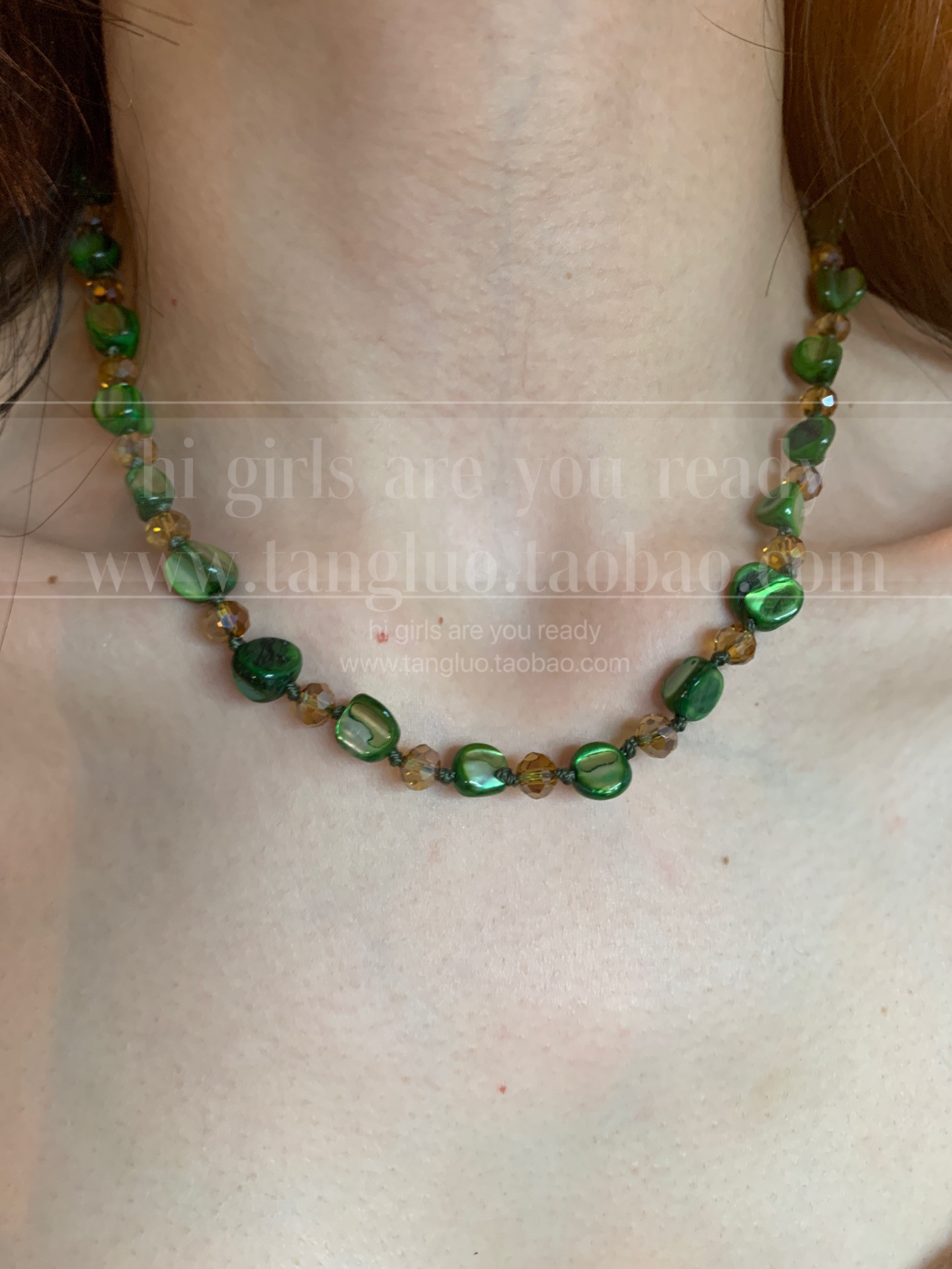 棠洛 显白的绿色不规则贝壳项链女手工编织波西米亚风锁骨链春夏