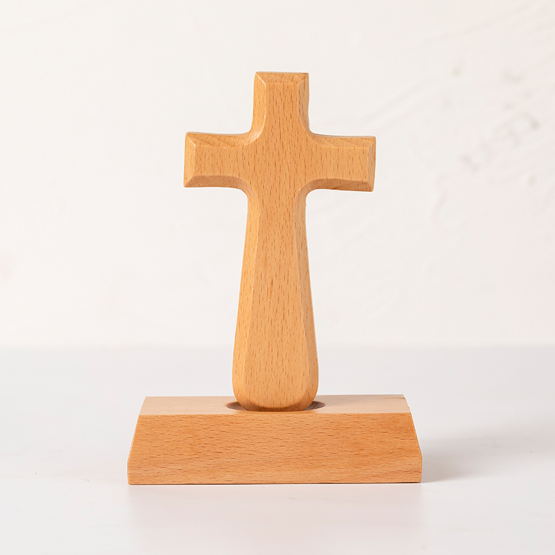 木质十字架摆件定制刻字实木简约家居桌面摆台 原木X十架圣诞装饰