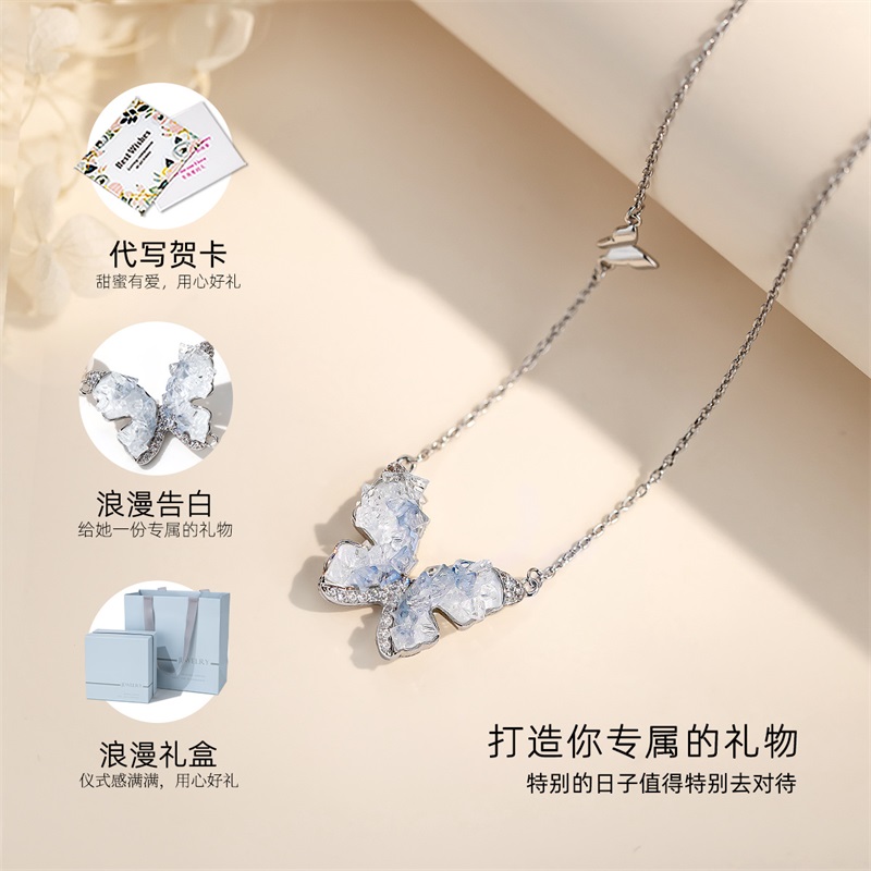 渐变蓝色蝴蝶项链女款2025新款高级感轻奢小众情人节礼物送女友