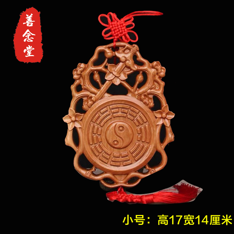 桃木桃花剑斩八卦镜挂件摆件七星吊坠烂桃花卧室婚房床头装饰品