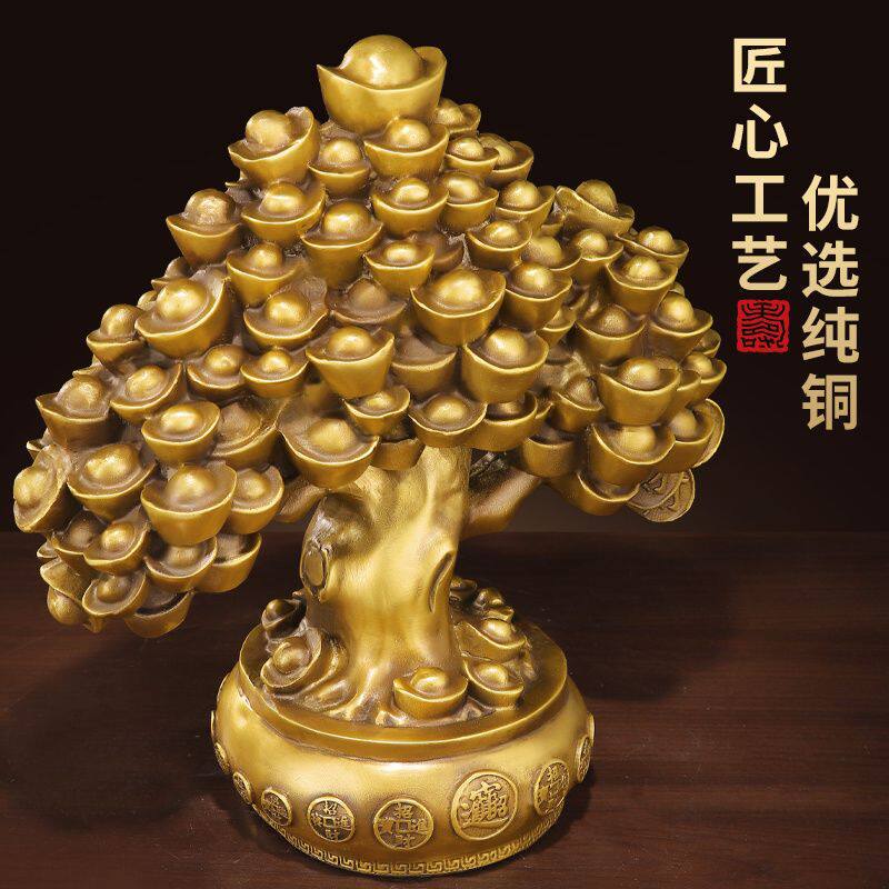 铜发财树摆件铜聚宝盆生肖马书房办公室工艺品