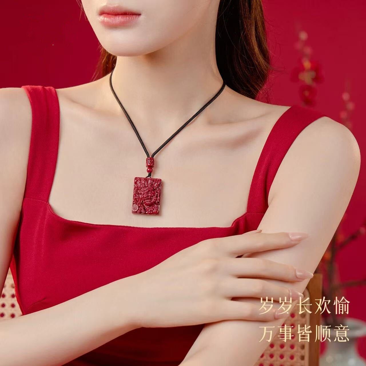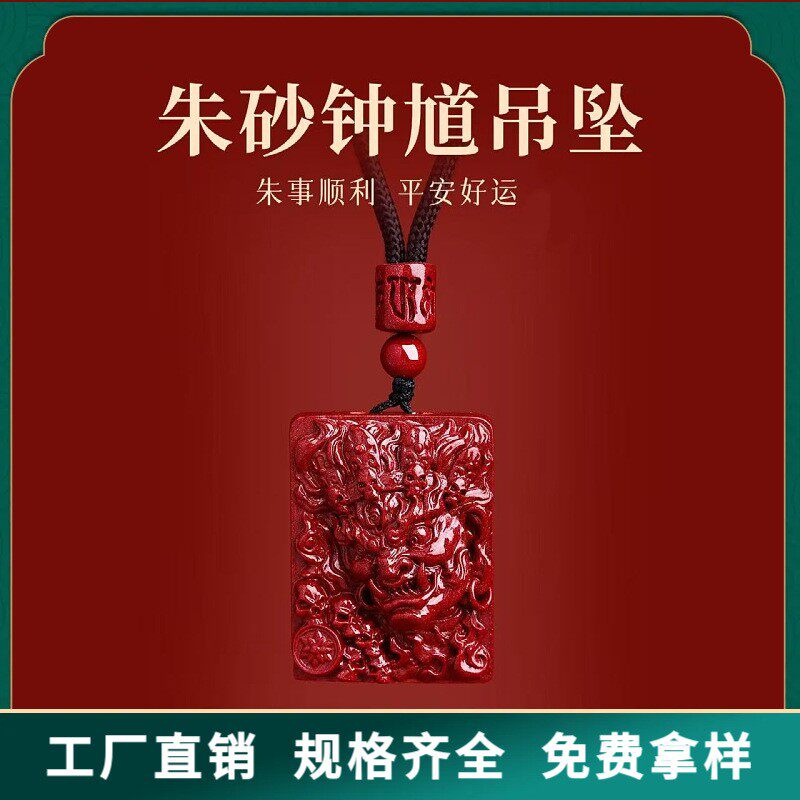 2026原矿朱砂吊坠钟馗方牌吊坠男女本命年转运情侣生日礼物项链