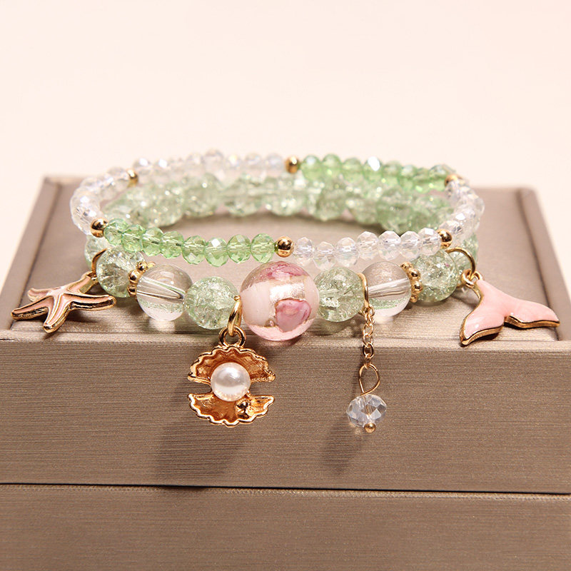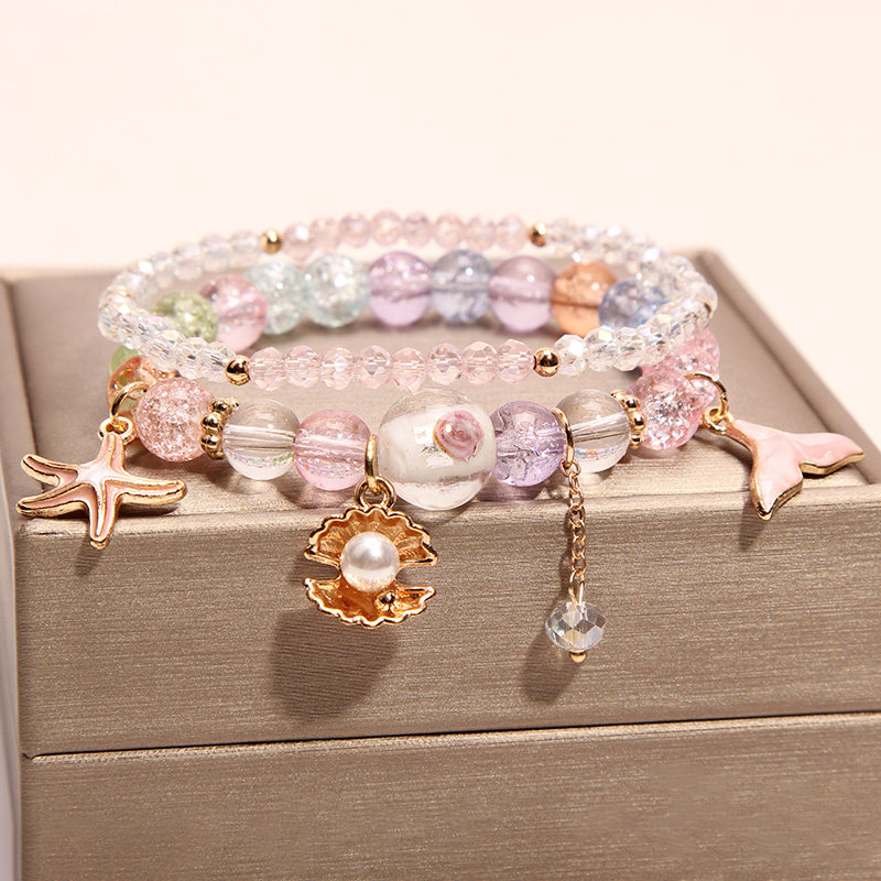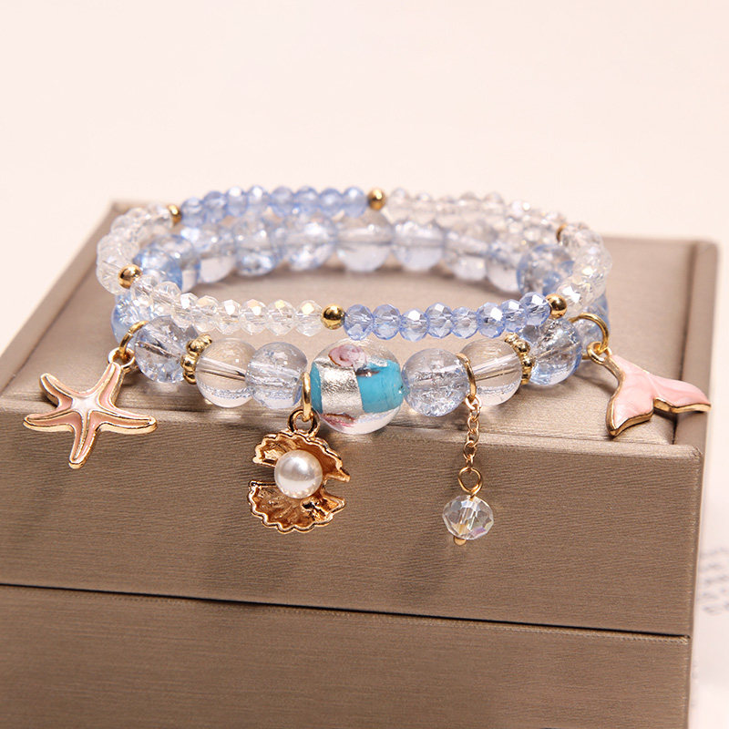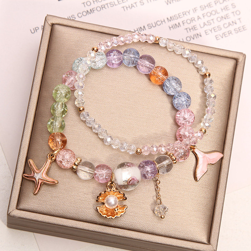 小清新爆花水晶鱼尾手链女甜美少女心海星贝壳水晶手串学生手环潮