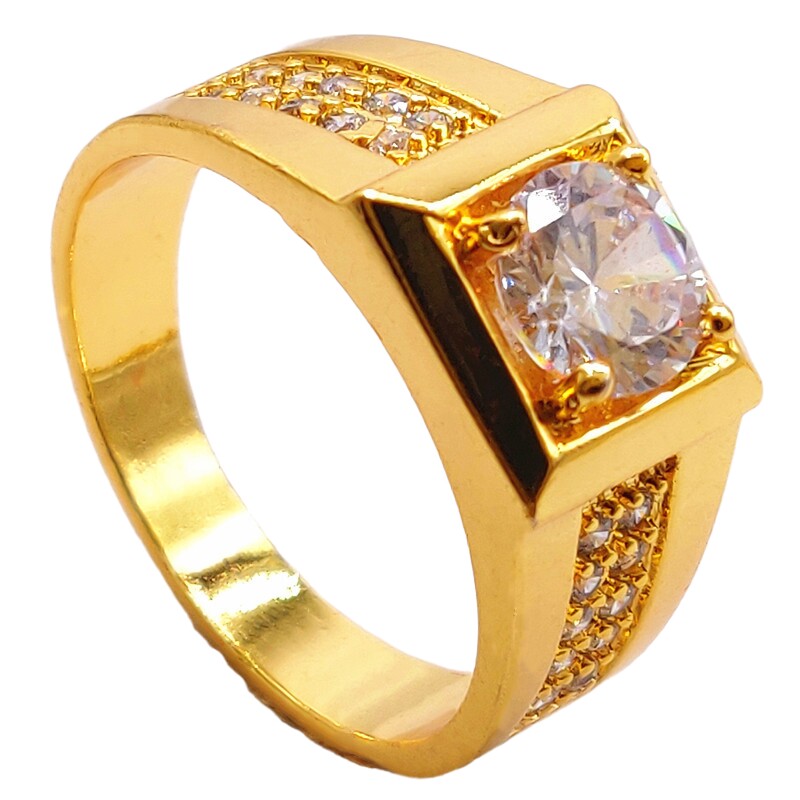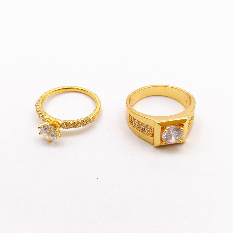 韩版镀24K金戒指男女情侣钻石戒结婚仿真钻戒沙金对戒婚庆饰品