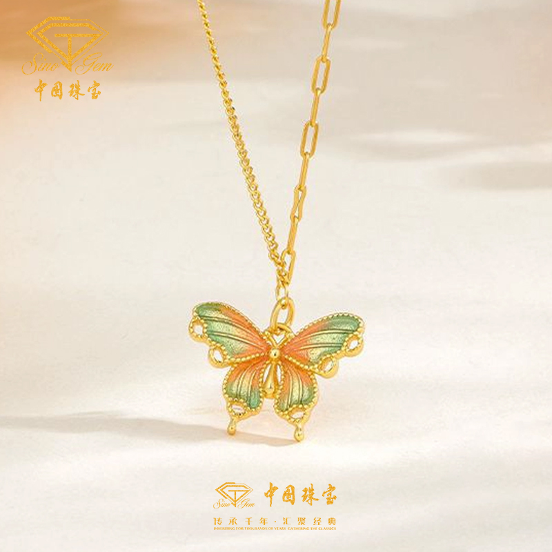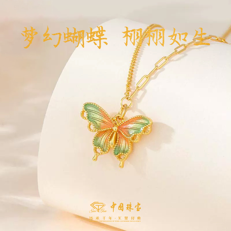 中国珠宝925银珐琅蝴蝶项链女款轻奢高级感吊坠520生日礼物送女友