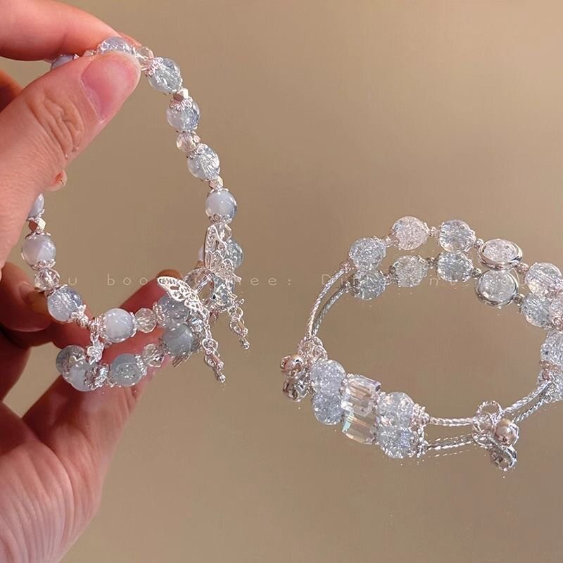 森系蓝色儿童蝴蝶花朵串珠手链高颜值学生党小众手串时尚百搭手镯