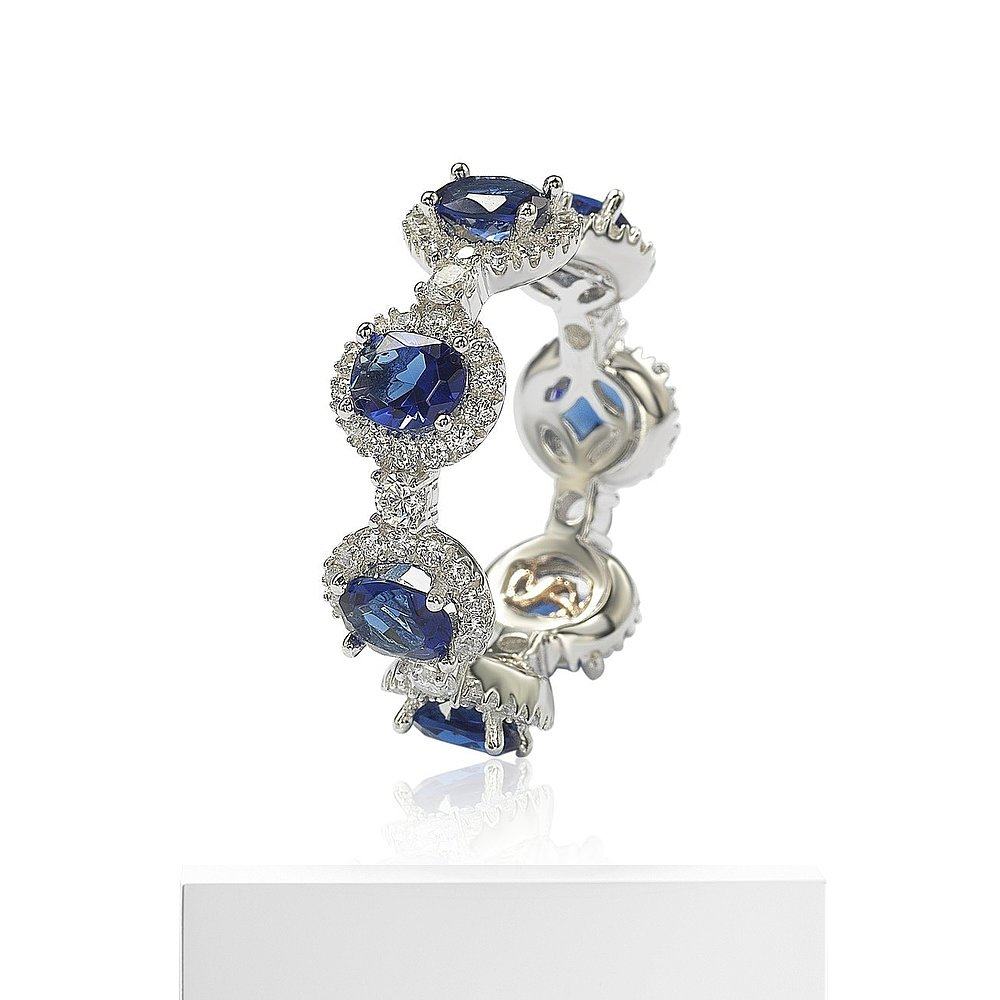 自营 Suzy Levian 椭圆形切割蓝色蓝宝石方晶锆石 925 纯银可叠戴