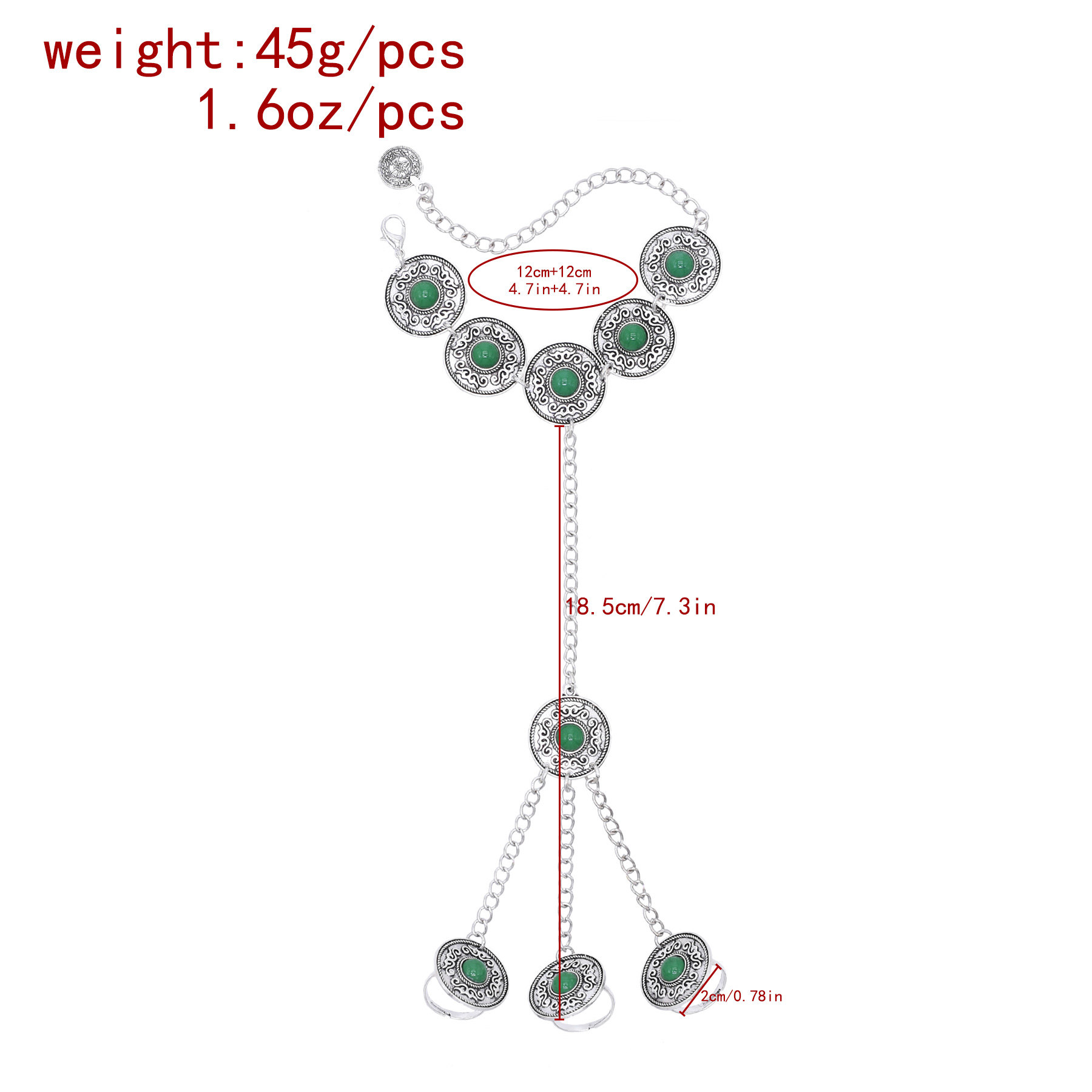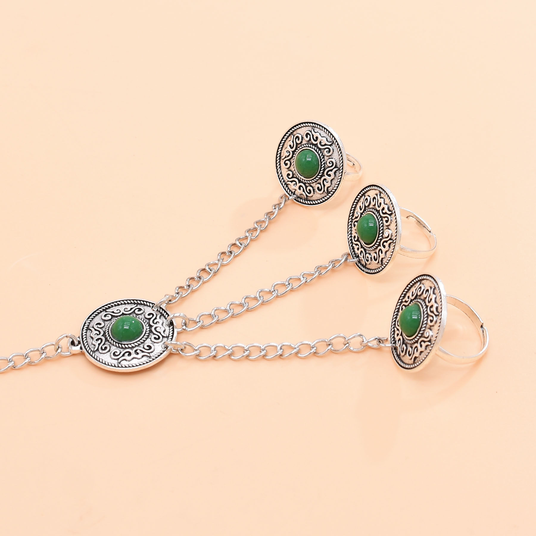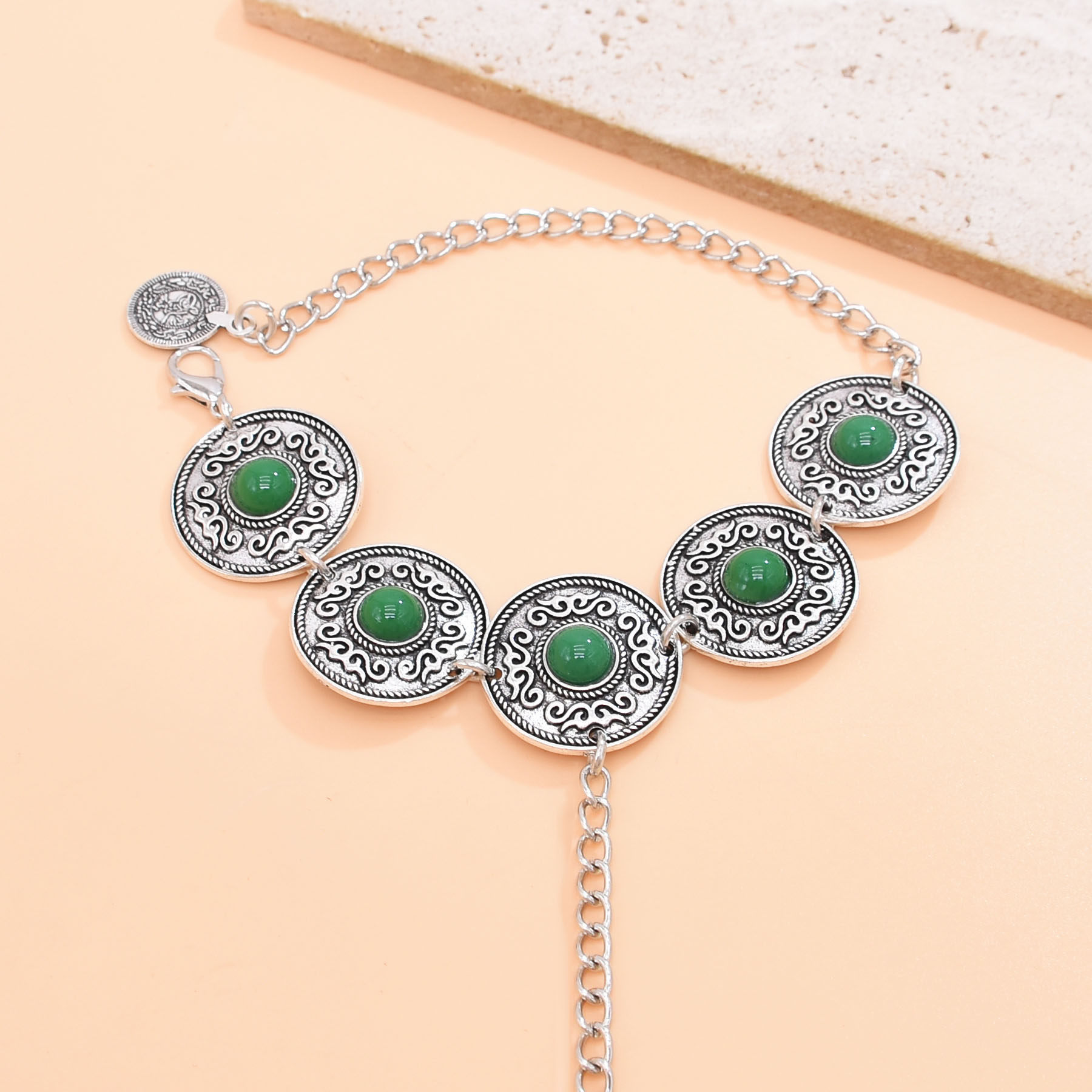 复古仿松石手背链波西米亚长款可调节手链流苏雕花新疆哈萨克手饰