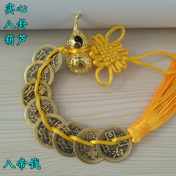 纯铜五帝六帝钱八帝钱八卦镇宅葫芦化五黄二黑门对门黄色红色绳结