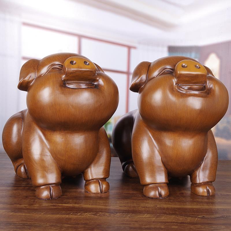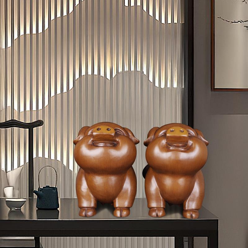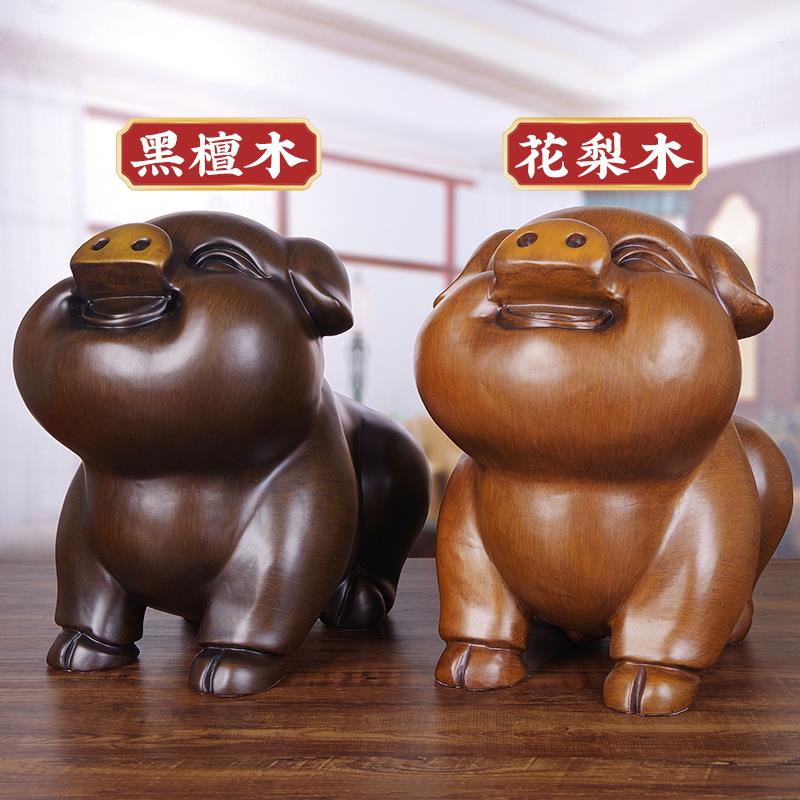 花梨木雕猪摆件吉祥物实木质一对招财猪工艺品客厅酒柜桌面装饰品