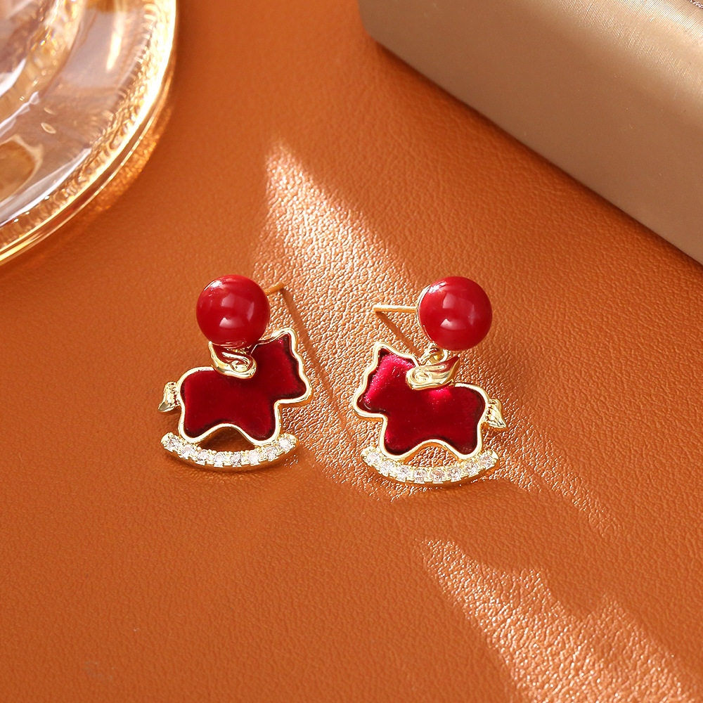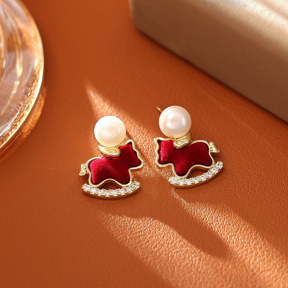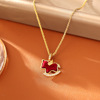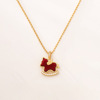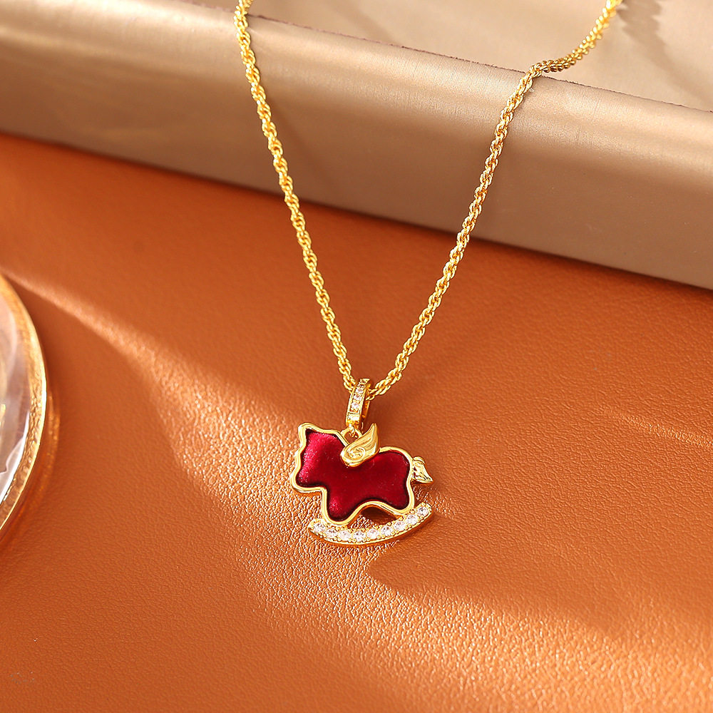 马上好运红色植绒锆石吊坠项链耳环复古生肖马锁骨链新年款耳钉女