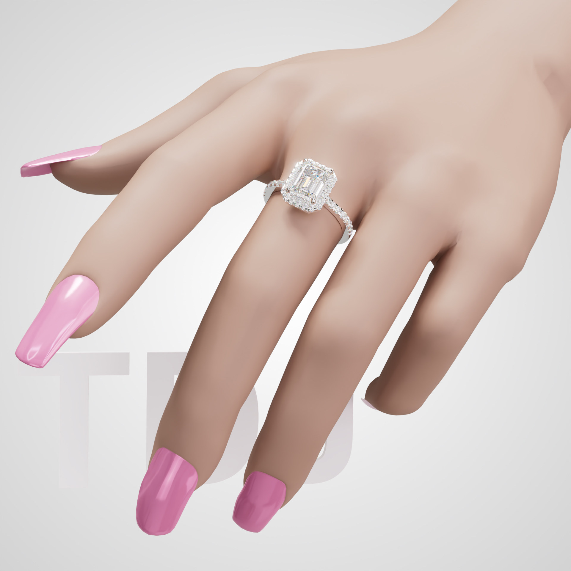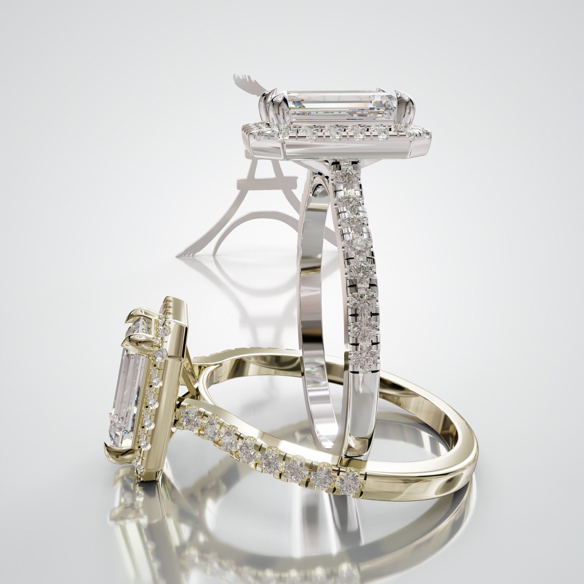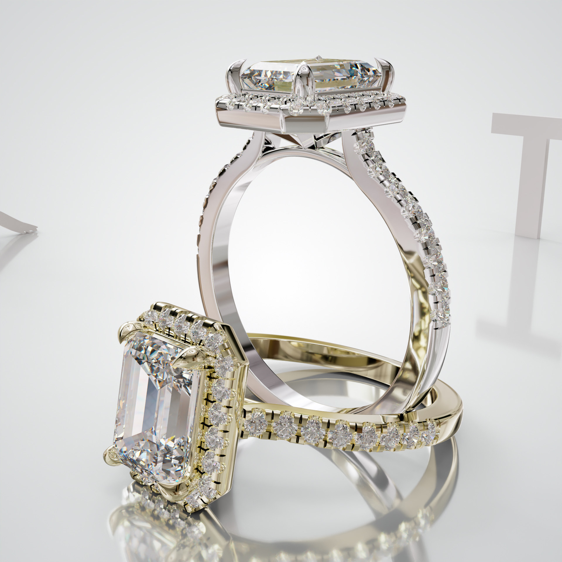 18K金祖母绿主石方型围镶戒指可定制轻奢高级订婚戒女款婚戒纪念