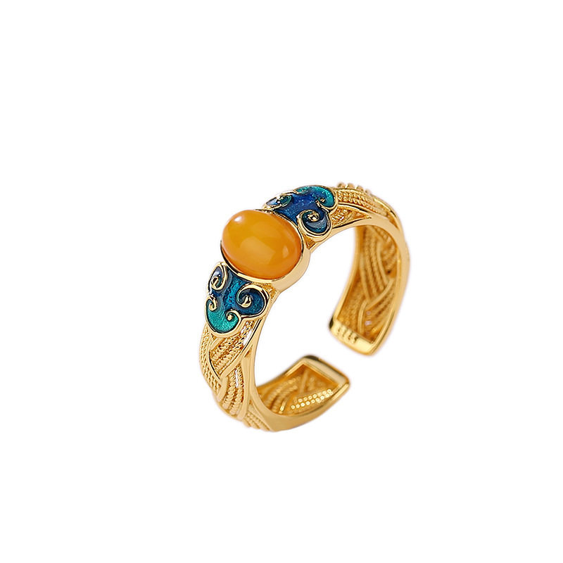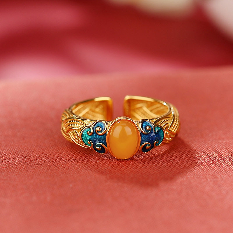 当前位置:首页>商品详情>复古珐琅祥云蜜蜡戒指女新中式小众高级感民族风开口百搭食指戒