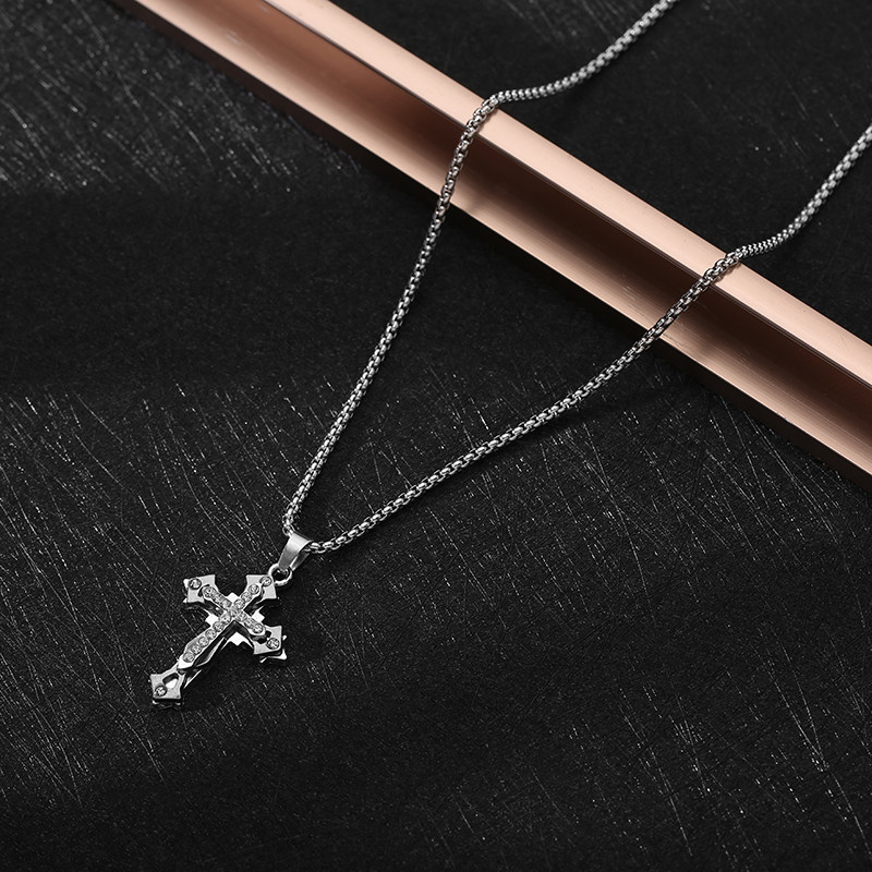 项链男孩潮镶钻十字架吊坠挂件嘻哈百搭男孩网红项链潮配饰品
