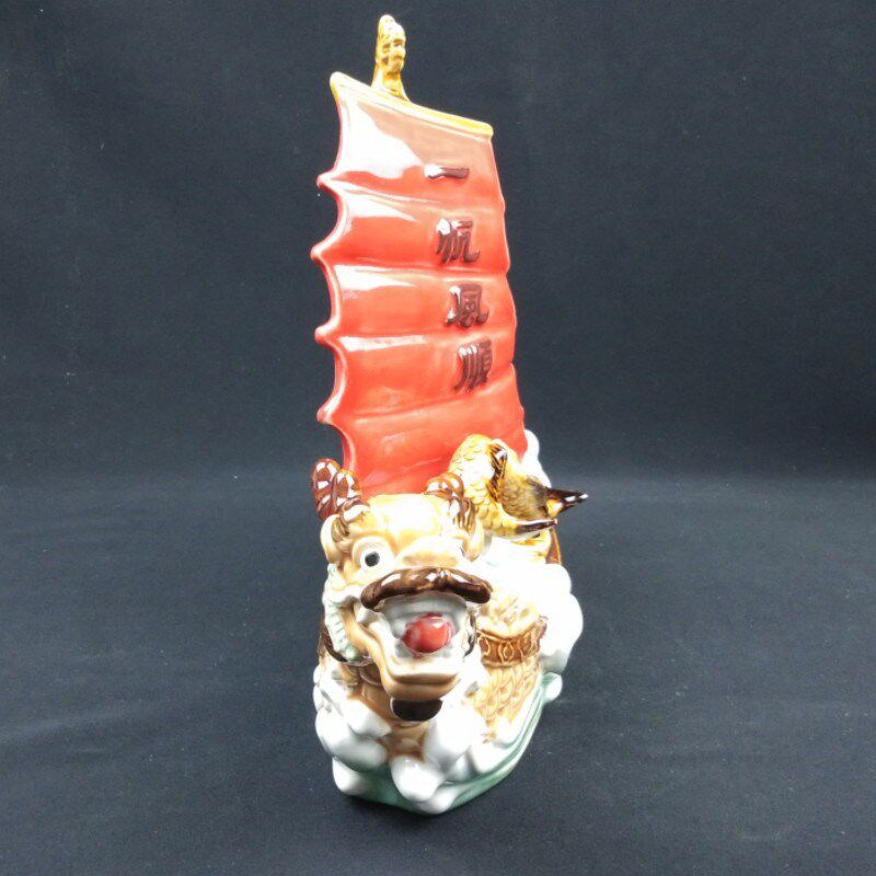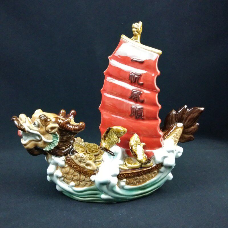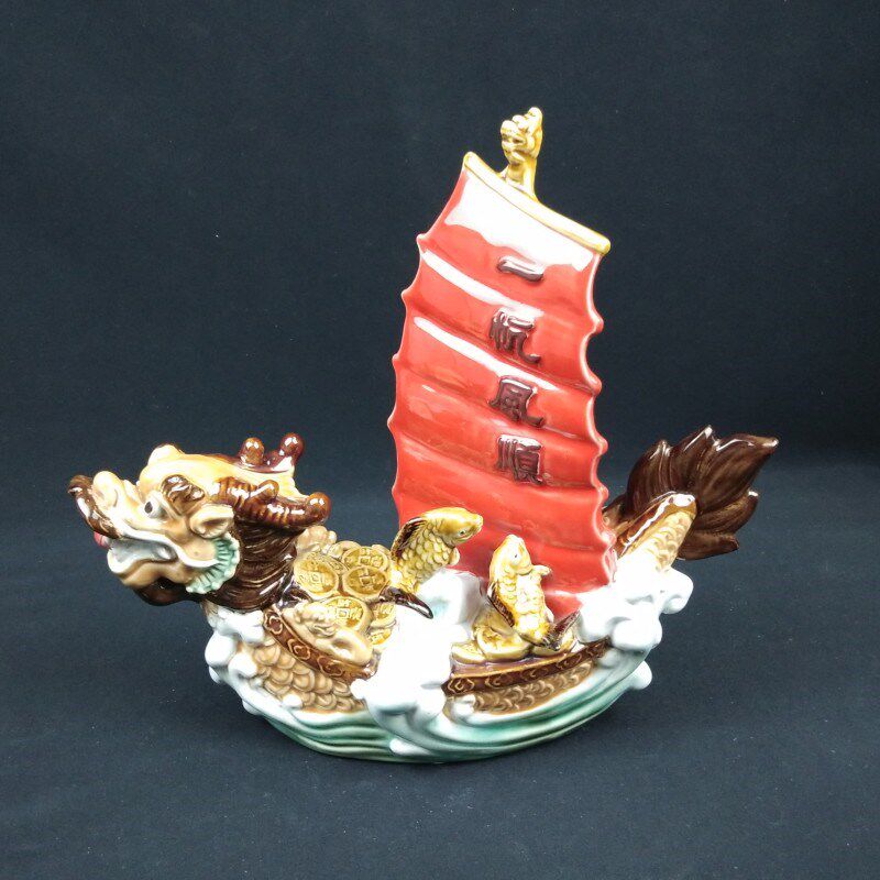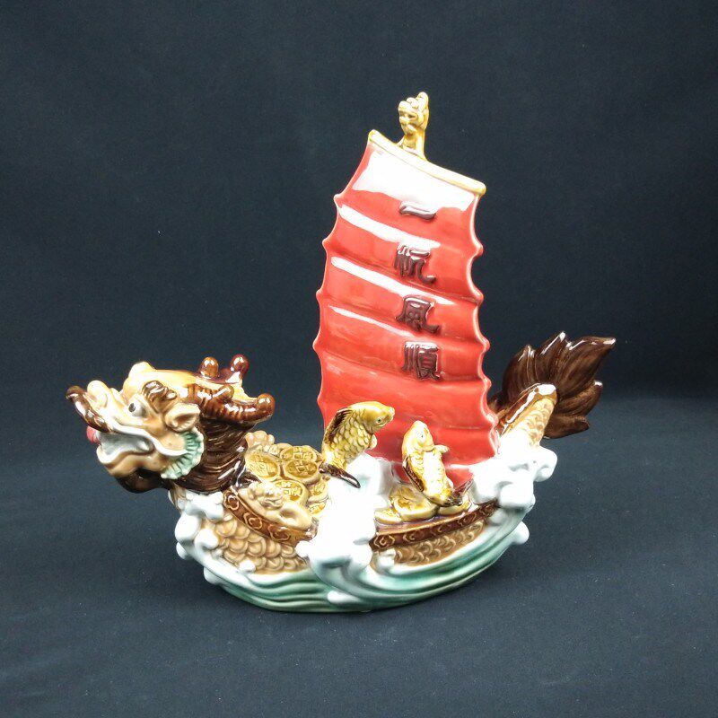 龙船石湾公仔陶瓷工艺品家居摆件客厅桌面创意中式生肖 一帆丰顺