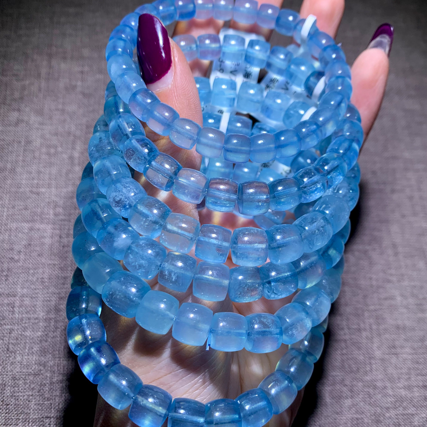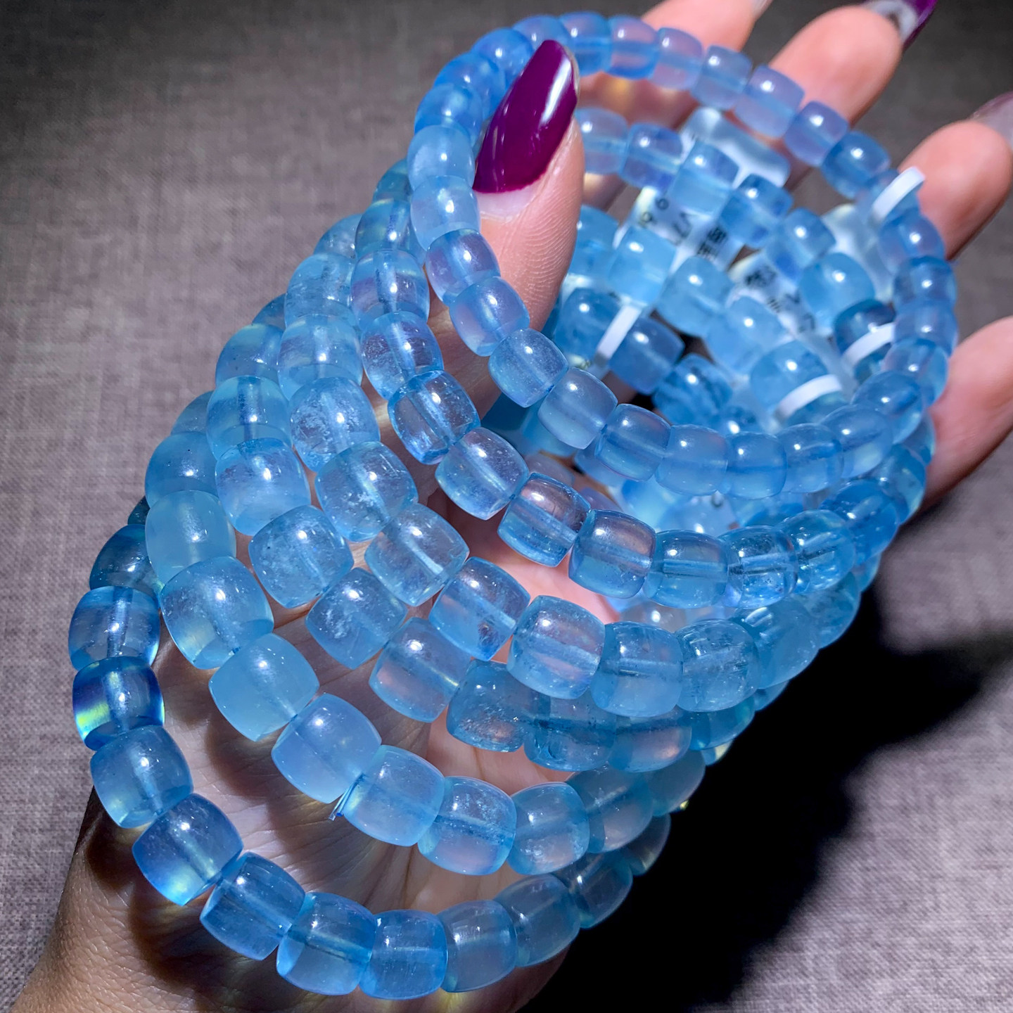 天然冰透海蓝宝直切桶珠手链巴西润蓝色水晶送礼物饰品清新情侣款