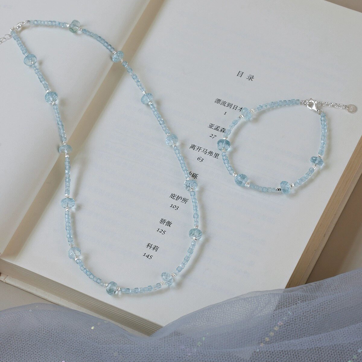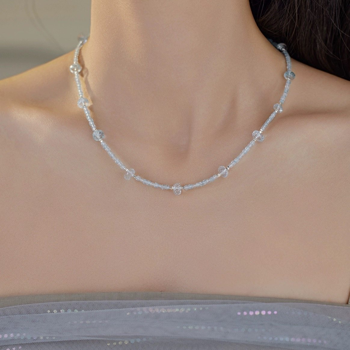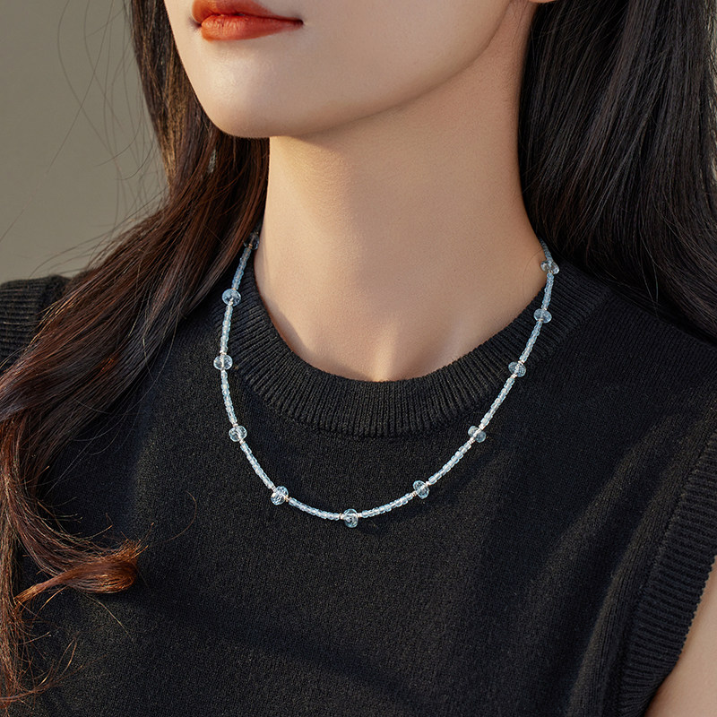 公主方糖蓝色托帕石满天星能量水晶项链清凉感气质小众高级感生日