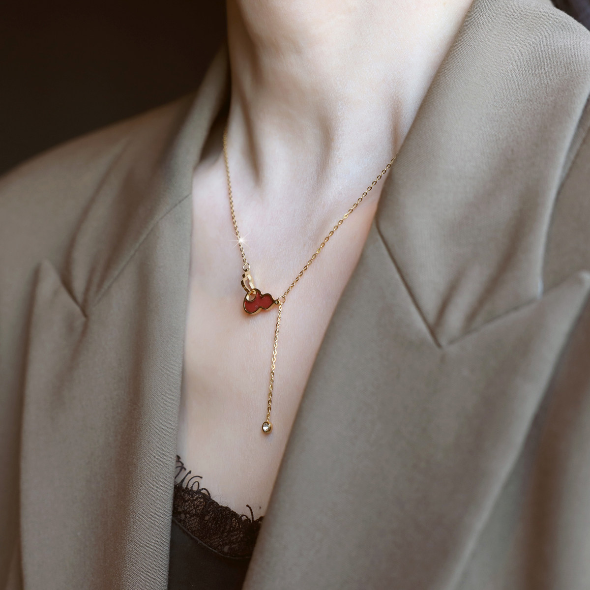 ZOXI轻奢小众不掉色平安喜乐红色葫芦项链流苏2026新款礼物配饰女