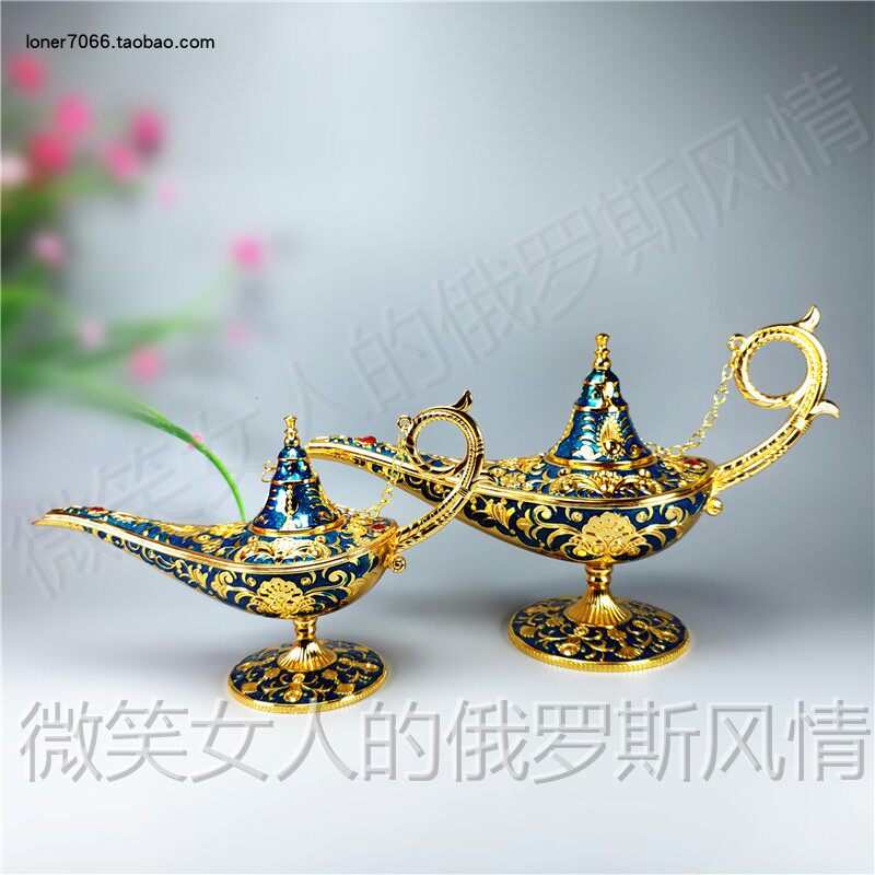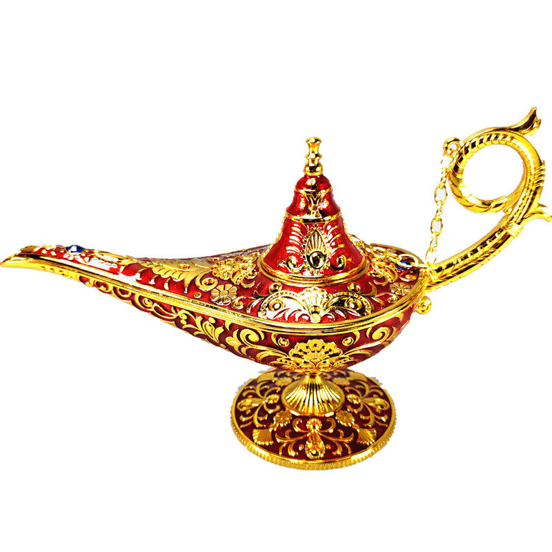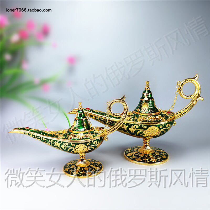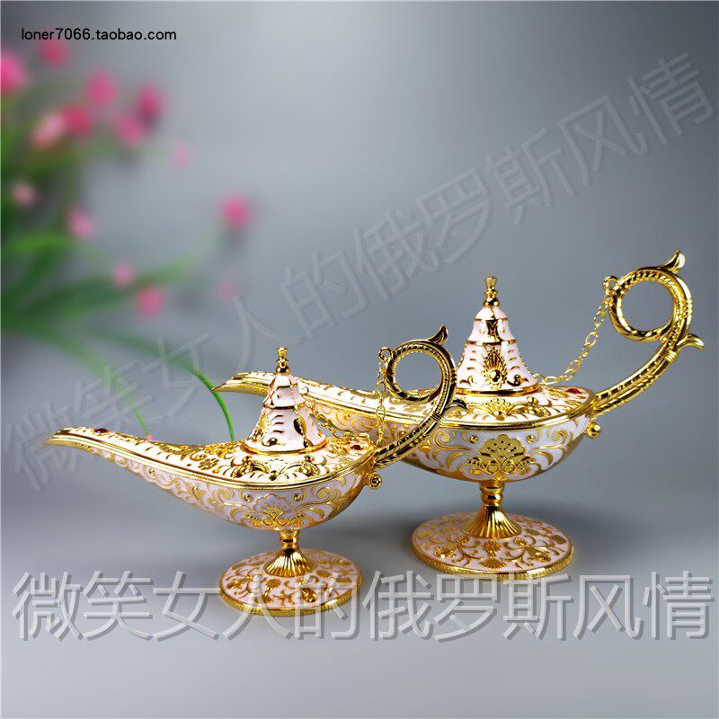 特价R2/3锡金属阿拉丁神灯大小号金红色镂空镶钻桌面摆件香薰