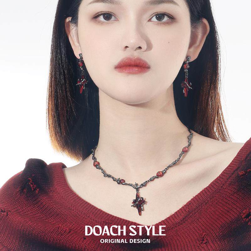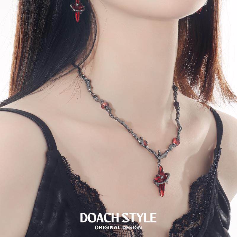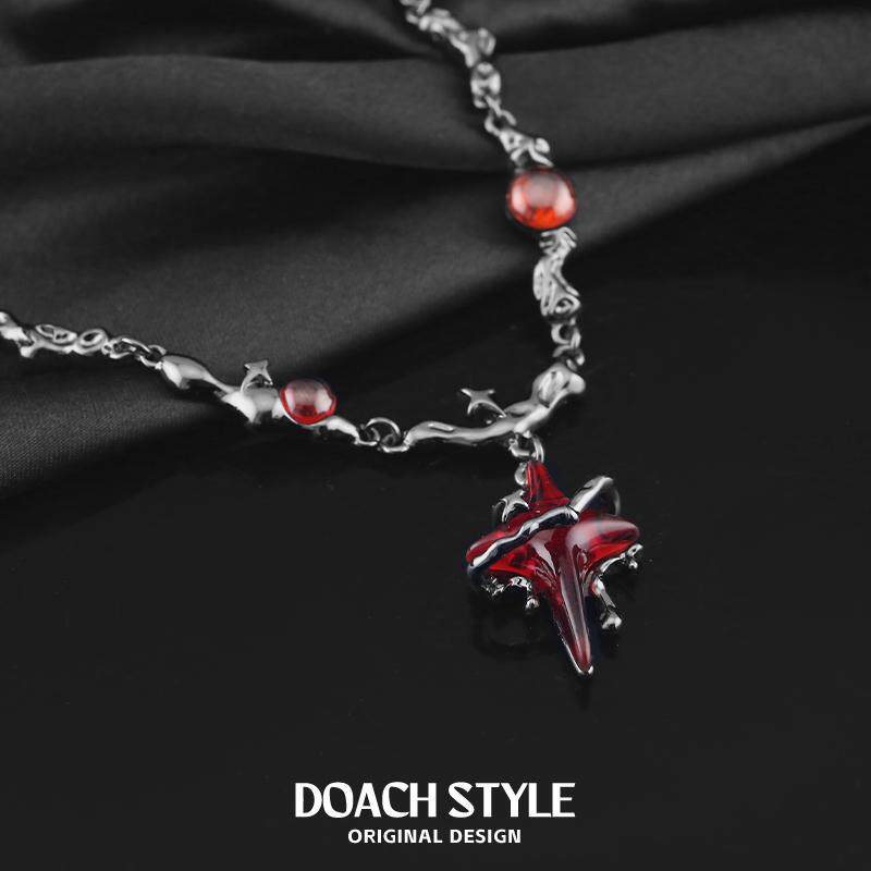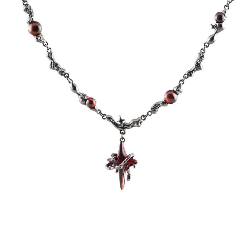 红色四芒星项链男女小众设计百搭时尚简约个性哥特风锁骨链配饰