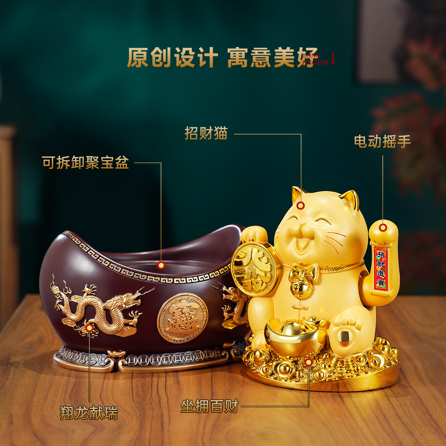2025新款招财猫摆件自动招手元宝存钱罐旺宅店铺前台装饰开业礼物