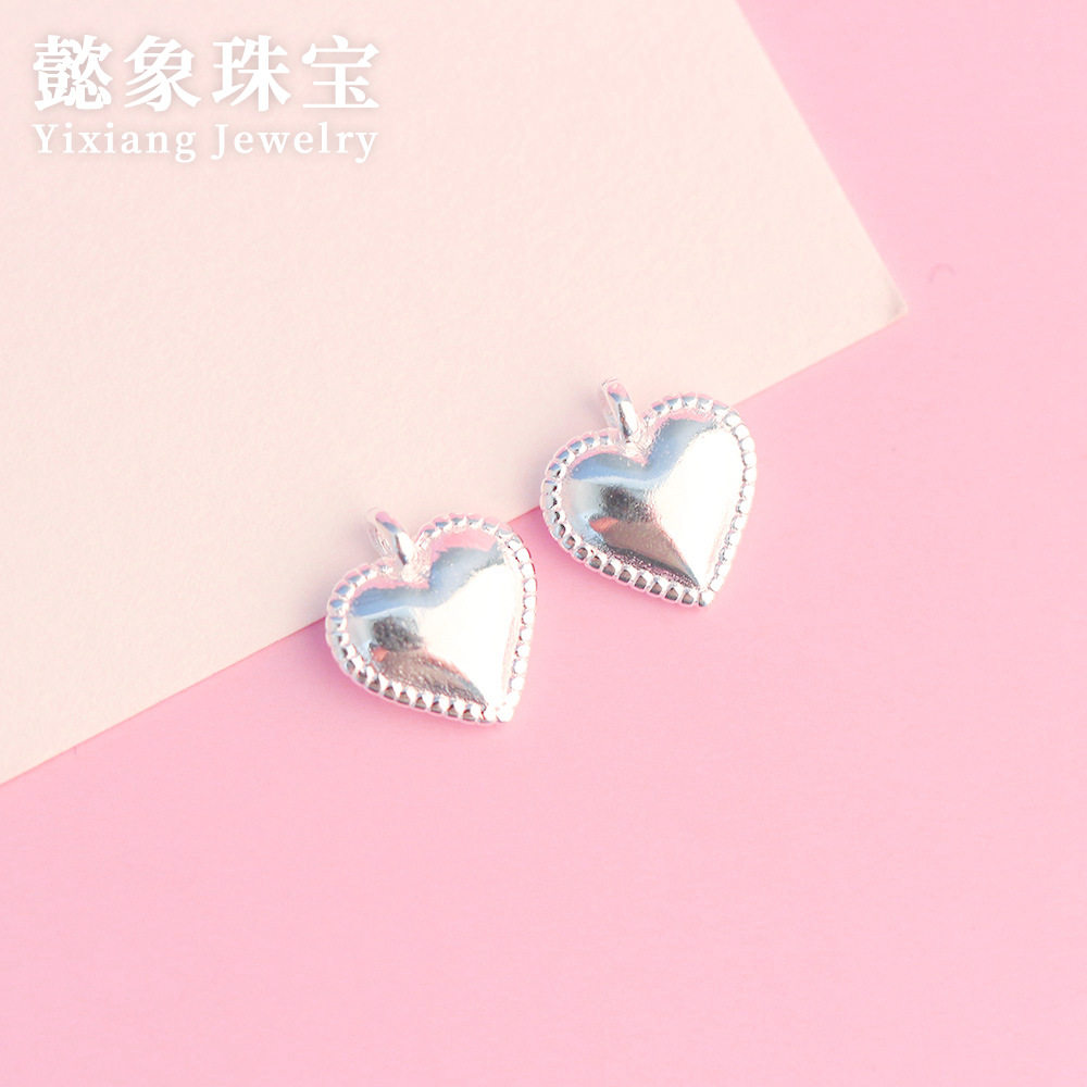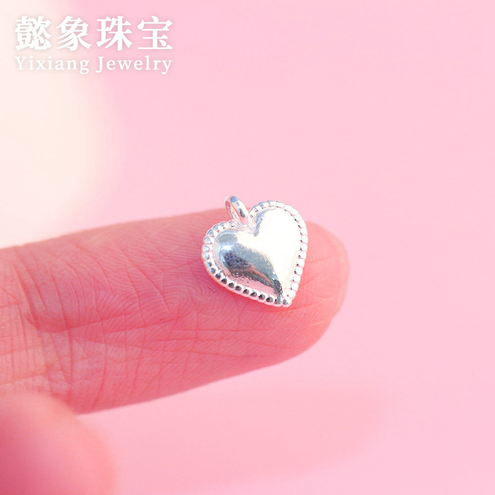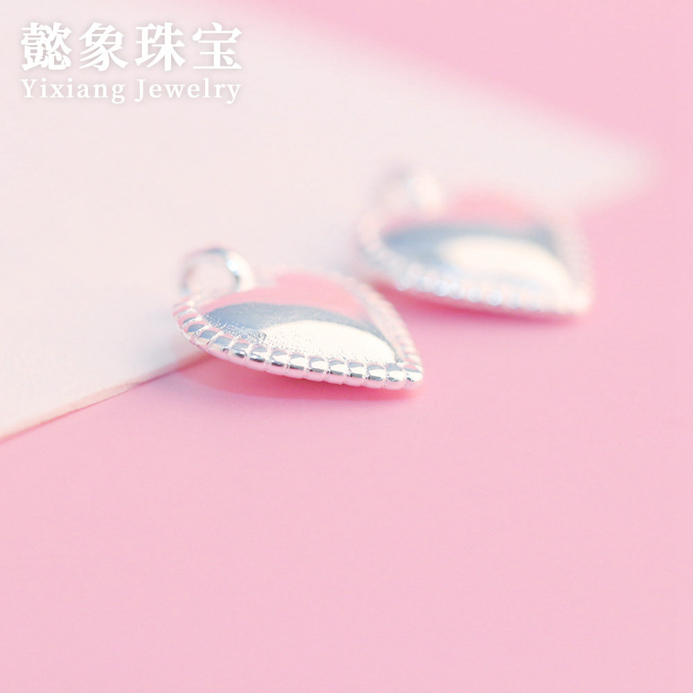 s925纯银珠边爱心吊坠素银小清新心形挂件精工diy编绳项链手链