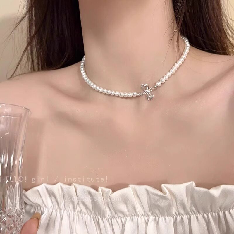 蝴蝶珍珠项链女轻奢小众设计高级感锁骨链网红气质百搭脖颈链配饰
