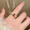 金色锆石中古风戒指女轻奢小众设计复古食指戒紫色高级感重工指环