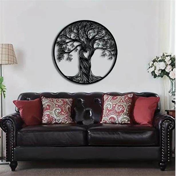 跨境黑色金属墙饰 爱心生命树圆形墙壁装饰饰卧室客厅铁艺艺术装