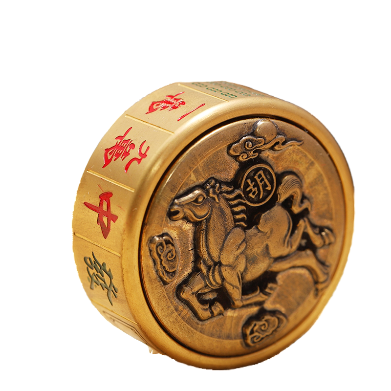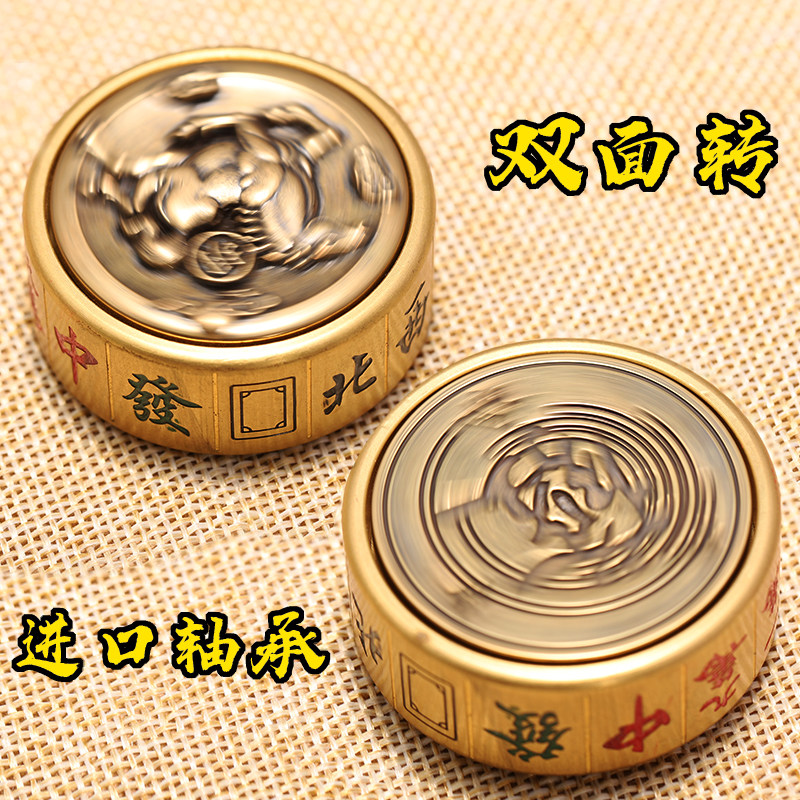 纯黄铜手把件桌面摆件旋转麻将指尖陀螺马上胡赢钱趣味减压神器