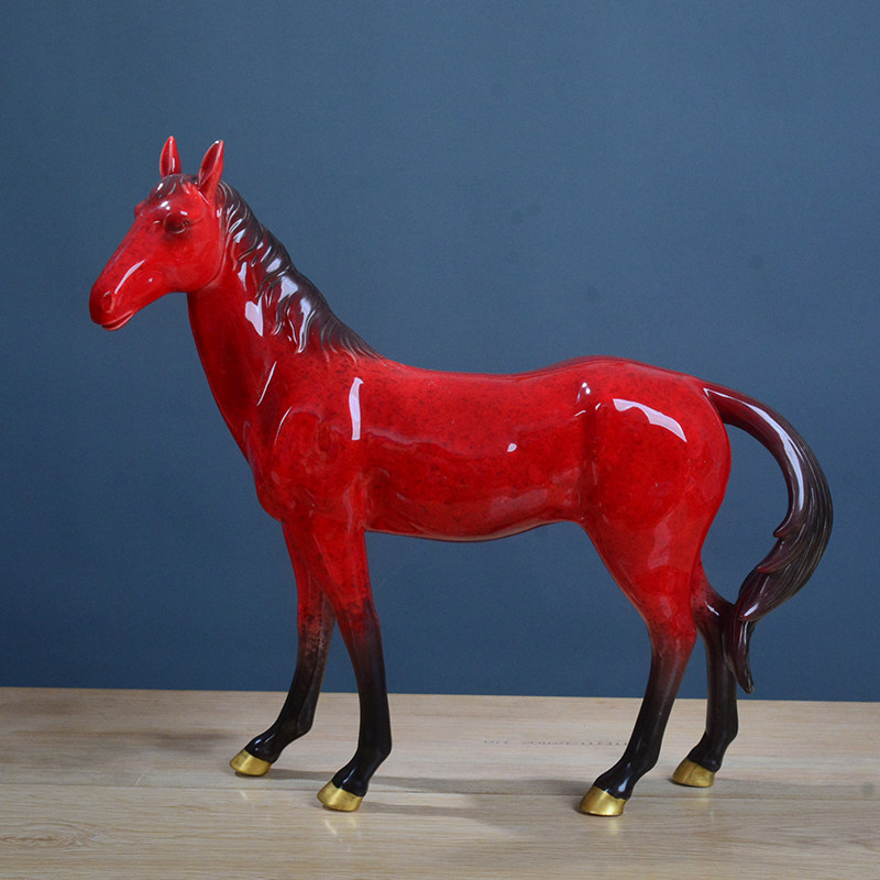 德化瓷器化红色陶瓷马到成功摆件创意可爱十二生肖家居摆设工艺品